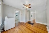 Vinyl ranch with large flat backyard - fenced - updates abound. Both hardwood and carpet flooring in the main level with an optional dining area, two bedrooms and one full bath. New carpeting. New heat pump, furnace and back patio. New roof, vinyl railing and updated electrical panel. Excellent location, close to everything. Was previously a rental property for a family member. Private location.