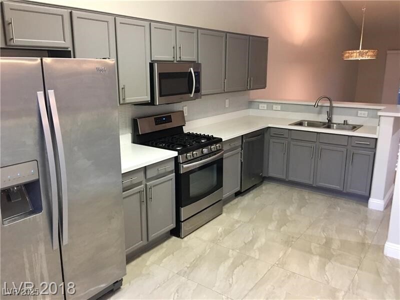 Gorgeous Summerlin condo with an attached garage located in a lushly landscaped gated community. Fully remodeled with modern touches to include quartz counters, glass backsplash, stainless steel appliances, 2 tone paint, faux marble tile, 6 baseboards, custom doors, new vanities, and new lighting throughout. Do not miss out on this one!"