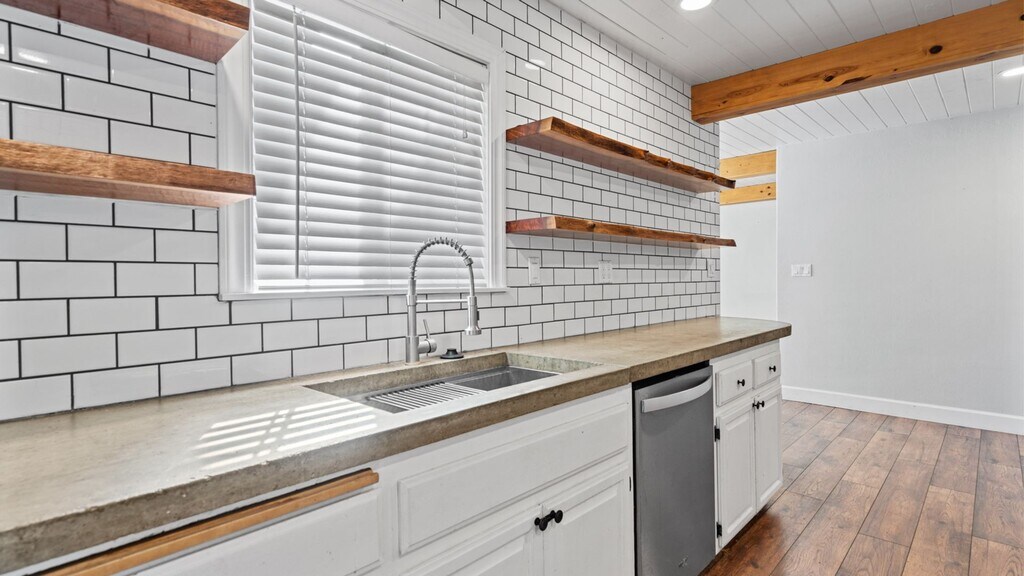 Adorable 3 bedroom 2 full baths in a lovely neighborhood. Raised ceilings with wood beam accents, recessed lighting, LVP flooring in living areas, formal dining room, indoor laundry closet, remodeled kitchen with concrete countertops, wood block counter area, deep sink with modern faucet that is open to living area. Adorable gated front porch with stone accents, low maintenance front yard with paver side walk and lots of driveway space for possible RV parking. Close to schools, parks, restaurants and shops. This home is tucked away in a neighborhood at the edge of the lovely town of Winters, but still close to the great shops and restaurants in the downtown area.