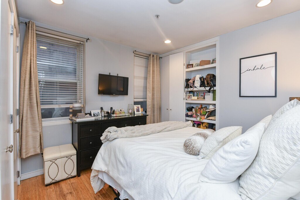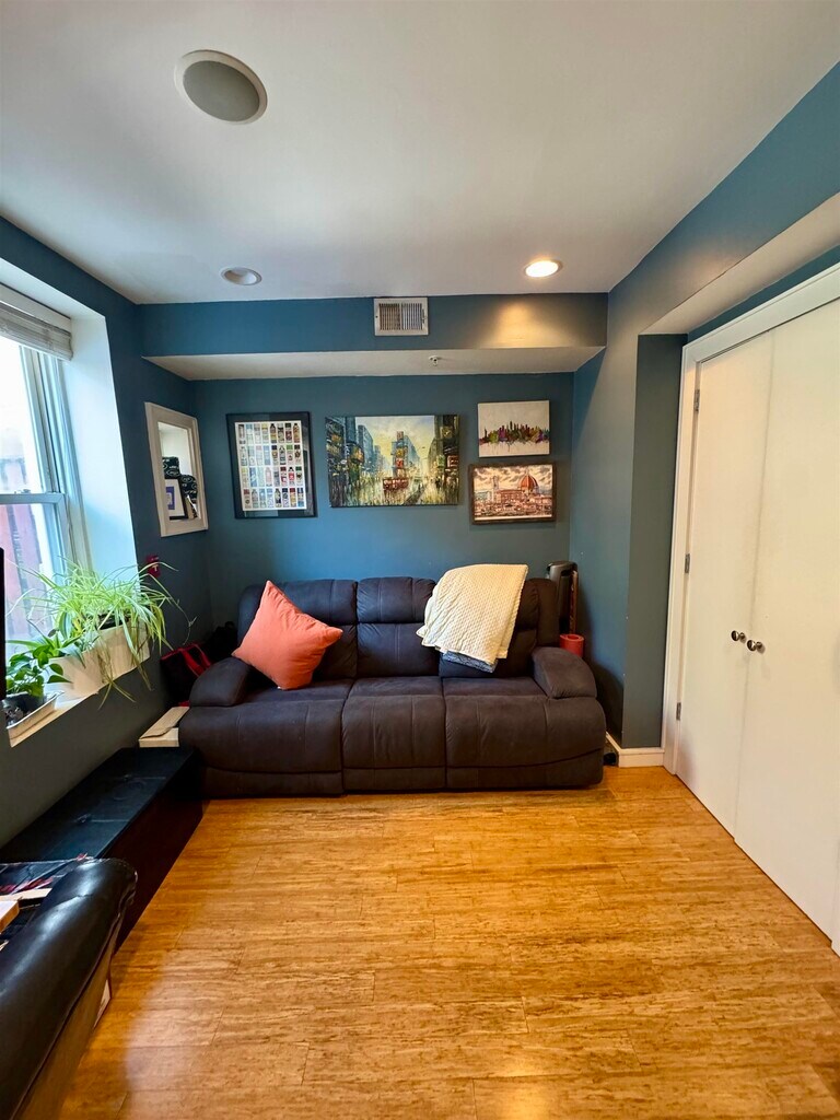 Stylish 2BD/1BA garden level unit ideally located in Midtown Hoboken boasting 9 foot ceilings, exposed brick, built-in shelving, and bamboo flooring throughout. Additional features include quartz countertops in kitchen, recessed lighting, GE Profile stainless steel appliances - including in-unit washer/dryer, and central A/C. Enjoy access to a shared outdoor yard. Conveniently located near Hoboken’s shops, restaurants, and parks, with easy access to NYC via PATH, bus, or ferry. Available 5/1!