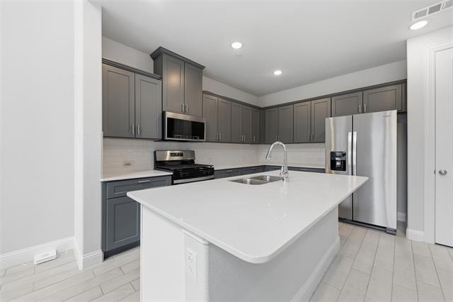 like-new 3-bedroom, 2.5-bath townhome for lease in the desirable Wade Settlement community of Frisco. The first floor features a modern kitchen with a large island, quartz countertops, stainless steel appliances, abundant cabinet space, and an open dining and living area highlighted by soaring 20-foot ceilings open to the second-floor loft. The second floor offers a spacious primary suite with an ensuite bath, large walk-in closet, and a conveniently located laundry room. The third floor includes a generous recreation or family room with balcony access, plus two additional bedrooms and a full bath—perfect for flexible living or entertaining. Refrigerator, washer, and dryer are included. Prime location near shopping, dining, and entertainment, with easy access to the Dallas North Tollway and Highway 121, and just minutes from the Dallas Cowboys Star facility and entertainment district. Enjoy modern living in a vibrant, highly sought-after area.