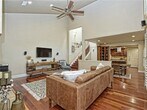 Experience refined living in this executive-style residence ideally located in the heart of Central Austin, with effortless access to Mopac, 360, and Steck Avenue—just minutes to Downtown and The Domain. While technically a townhome, it lives like a private residence with only one adjoining neighbor and a charming shared courtyard entry. From the moment you arrive, the curb appeal and gated courtyard set a welcoming tone. Inside, the home showcases timeless, high-end finishes including gleaming hardwood floors, plantation shutters, and soaring ceilings that create a light-filled, sophisticated atmosphere. The open-concept design is both functional and elegant, centered around a chef-inspired kitchen featuring granite countertops, rich wood cabinetry, a commercial-grade gas cooktop with vent hood, and a walk-in pantry. The kitchen, dining, and living areas flow seamlessly together—ideal for entertaining or everyday comfort—anchored by a beautiful fireplace. A main-level bedroom and full bath offer flexibility for guests or a private home office. Upstairs, the spacious primary suite serves as a true retreat, complete with wood flooring and a spa-like bath featuring dual vanities, soaking tub, separate shower, and a generous walk-in closet. Step outside to a private, fenced backyard with a patio—perfect for relaxing or entertaining—creating an extension of the living space. Additional highlights include a 2-car attached garage and thoughtful storage throughout. Front yard maintenance and sprinkler water are included. Washer, dryer, and refrigerator are provided. Available for immediate move-in, this is a rare opportunity to lease a well-appointed home in a prime Austin location. MLS ID 5038553
