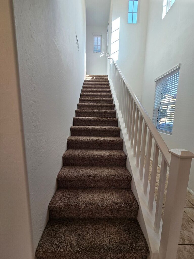 This beautiful 3-bedroom, 2.5-bath home with a 2-car garage is located in desirable Northwest Las Vegas. The home features tile flooring throughout the downstairs and wet areas, with plush carpet in all bedrooms. Enjoy an open floor plan that seamlessly connects the family room, kitchen, and dining area—perfect for everyday living and entertaining. The kitchen offers a large island with granite countertops, plenty of storage space, and stainless steel appliances. Step outside to a covered patio and a low-maintenance landscaped backyard, ideal for relaxing or hosting guests. This home truly has it all—a must-see! Note that the rent includes a $100 monthly fee for the Sewer, Trash, and the Resident Benefit Packet. For more information, please call