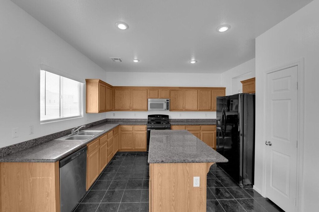 This two-story home features an open-concept layout that flows seamlessly from the living and dining areas into a well-appointed kitchen with a large island, upgraded tile finishes, and included appliances (refrigerator, stove, and dishwasher). Fresh paint and new flooring throughout give the entire home a clean, modern feel. The spacious primary suite offers a private retreat with its own bathroom and generous closet space, while the additional bedrooms provide flexibility for family, guests, or a home office. A separate family room adds extra living space—perfect for relaxing or entertaining. Enjoy added convenience with a dedicated laundry area complete with washer and dryer, central heating and air conditioning, and window blinds throughout. Outside, the low-maintenance desert landscaping keeps upkeep simple, while the attached garage and driveway provide ample parking. Located just minutes from shopping, dining, and major roadways, this home delivers the ideal mix of comfort, space, and convenience. Apply online at www.landbank.us Application Fee: $90 per adult — all occupants age 18 and older must apply and be listed on the lease. The application includes a credit check, background check, and three-year rental history verification. No prior evictions, skips, or outstanding balances owed to previous landlords — applications not meeting these criteria will be denied. Income Requirement: Applicants must provide the two most recent pay stubs (or four if paid weekly) demonstrating a minimum household income of three times the total monthly rent. Administrative Fee: $150 due upon approval. Minimum FICO Score: 620