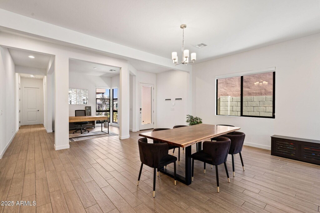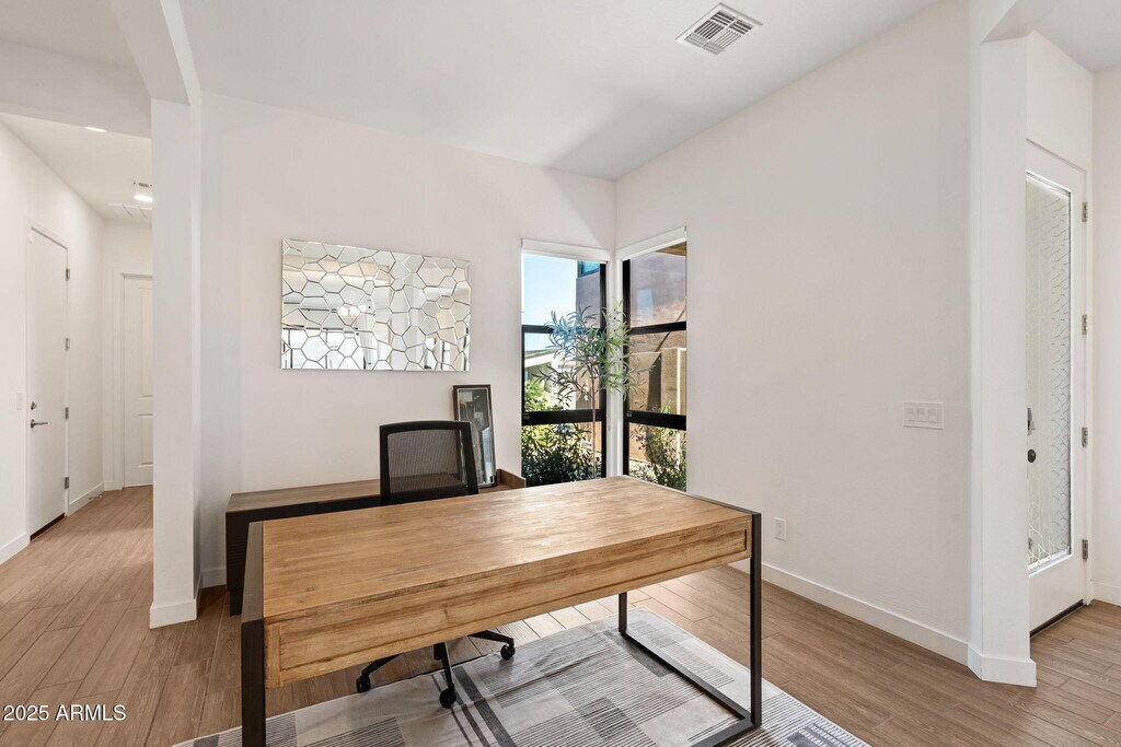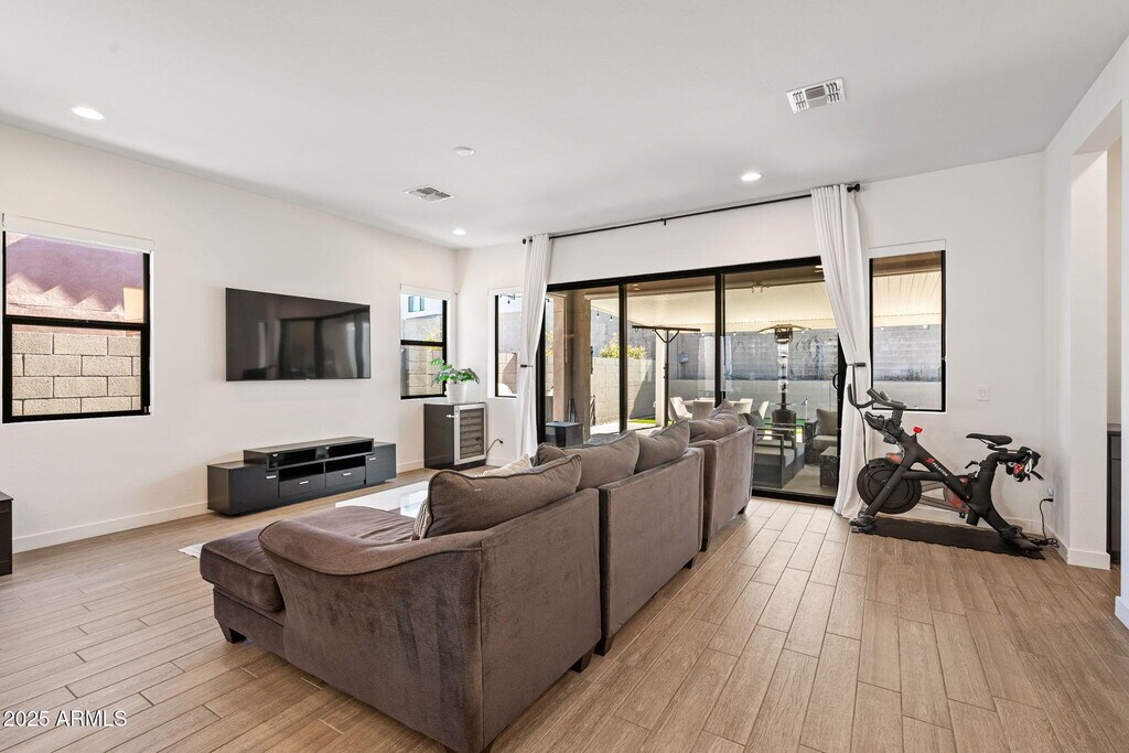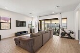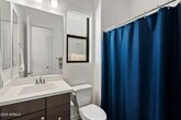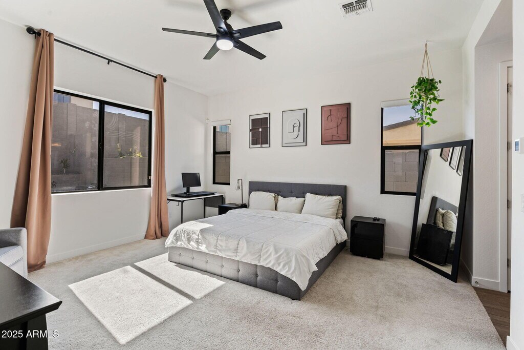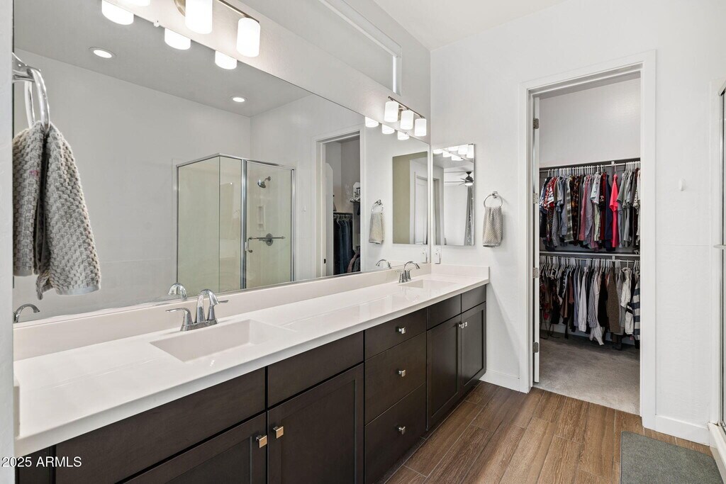 Welcome to this stunning home located in the highly sought after Avance community in South Mountain. This beautifully designed home offers modern living with thoughtful upgrades throughout. Step inside to find an open floor plan featuring wood-like tile flooring and ceiling fans in every room. The gorgeous chef's kitchen is the true centerpiece of the home,showcasing stainless steel appliances,a double oven,gas cooktop,quartz countertops,and a striking waterfall island,perfect for cooking,entertaining,or gathering with friends and family. The split-bedroom layout provides added privacy for all. The spacious primary suite is tucked away for comfort,while one of the secondary bedrooms includes its own full bathroom ideal for guests,roommates,or multigenerational living. The backyard is an entertainer's dream,featuring an extended patio cover with a paver design,a gas fireplace,synthetic grass for easy maintenance,and a custom putting green. Enjoy resort-style amenities within the Avance community,including a sparkling pool,relaxing spa,and fully equipped gym. A must-see!