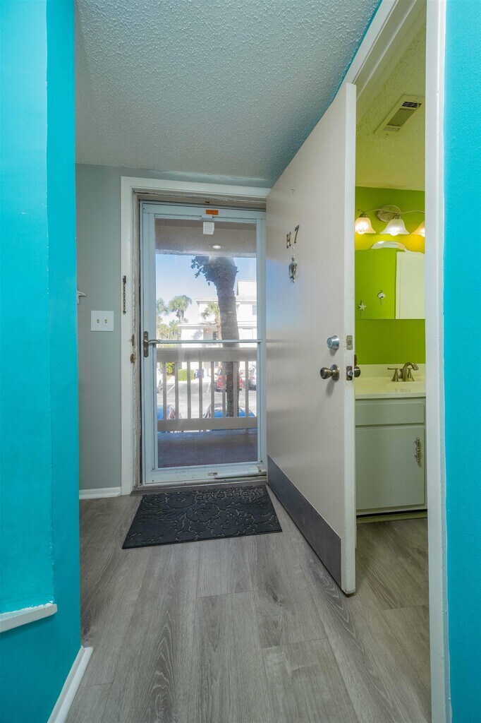 2BR AT FOUR WINDS CONDOS AT CRESCENT BEACH! Fully furnished, includes all appliances, TV's & furnishings. Luxury Vinyl Plank on entire 1st floor. Kitchen with white cabinets & white appliances leads into brightly painted living room. 10'x7' balcony with large storage closet (perfect for beach supplies) that overlooks pool & some ocean view. Convenient 1/2 bath is located downstairs. Open staircase with cleverly placed closet beneath for extra storage. 2nd floor has 2 good sized bedrooms. Owner BR has regular closet, king size bed, plus huge walk in closet (perfect place for a 2nd full bathroom) & some ocean view. 2nd bedroom includes a queen size bed that backs to a queen size Murphy bed. Four Winds sits in the middle of Crescent Beach far away from the public beach ramps. 2 pools, 2 dune walkovers, tennis, pickleball, shuffleboard. Bring your boat & park in allotted area. Intracoastal boat ramp at Devil's Elbow, only 1.5 miles north of Four Winds.