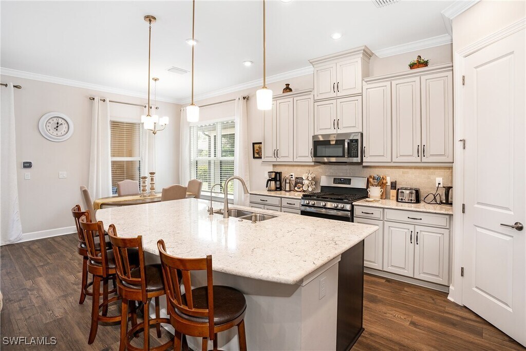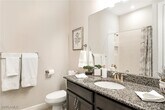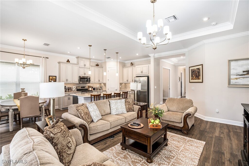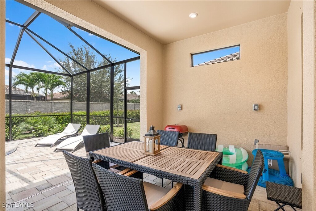 Location. Community. Quality Living — It All Starts Here! Welcome to Esplanade at Hacienda Lakes,a luxurious gated community perfectly located near Naples’ most desirable shopping,dining,entertainment,and the area’s world-famous beaches. Enjoy a relaxed,friendly neighborhood designed for resort-style living every day. This home offers over 2,200 sq. ft. of beautifully appointed living space,featuring 3 bedrooms,3.5 baths,and a private den — the perfect blend of comfort and style. The open-concept main living area showcases luxury vinyl plank flooring throughout,while the upgraded gourmet kitchen includes quartz countertops,a gas cooktop,and modern finishes ideal for cooking and entertaining. Enjoy seamless indoor-outdoor living with pocket sliders that open to the covered lanai,where you can dine al fresco or unwind with a sunset cocktail. The primary suite offers a king bed,walk-in closet,dual vanities,and a spa-like walk-in shower. Each guest bedroom features its own ensuite bath and queen bed for privacy and comfort. Step outside to your private heated pool and spa,surrounded by lush landscaping for ultimate relaxation and tranquility — a perfect spot to soak up the Florida sunshine. Residents enjoy access to resort-style amenities,including pickleball and tennis courts,a fitness center,billiards room,community pool,lap pool,hot tub,and scenic walking and biking trails. This home offers luxury,convenience,and community — everything you need to live your best Naples lifestyle.