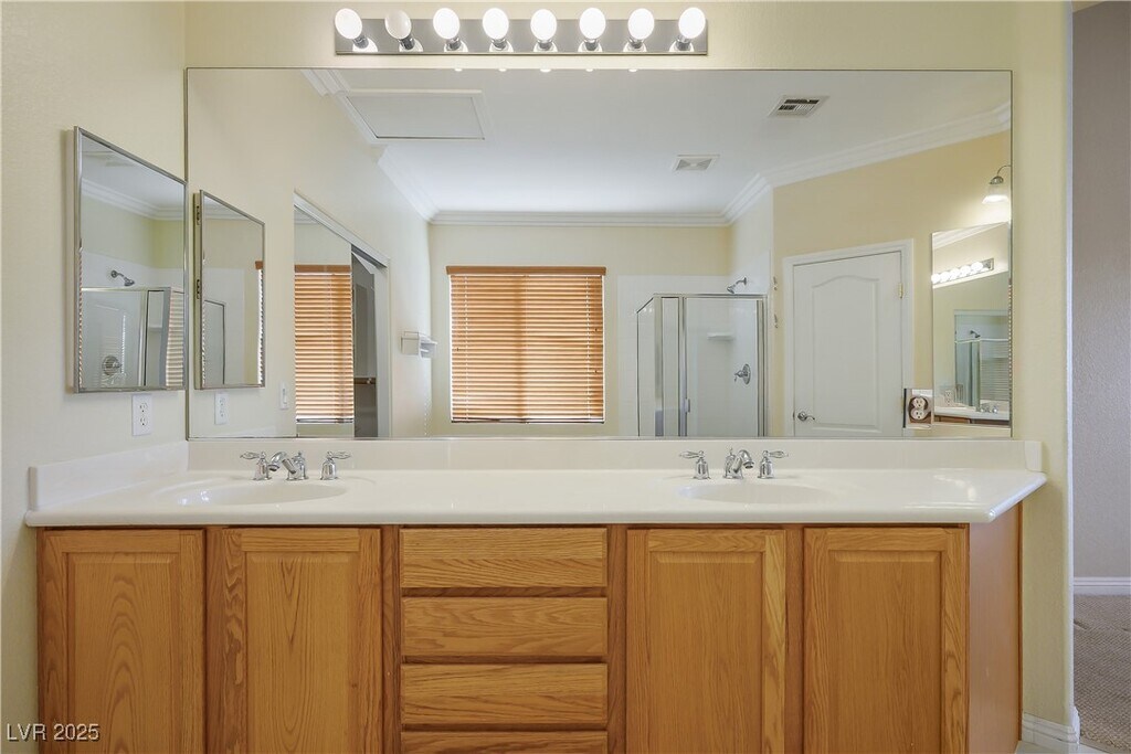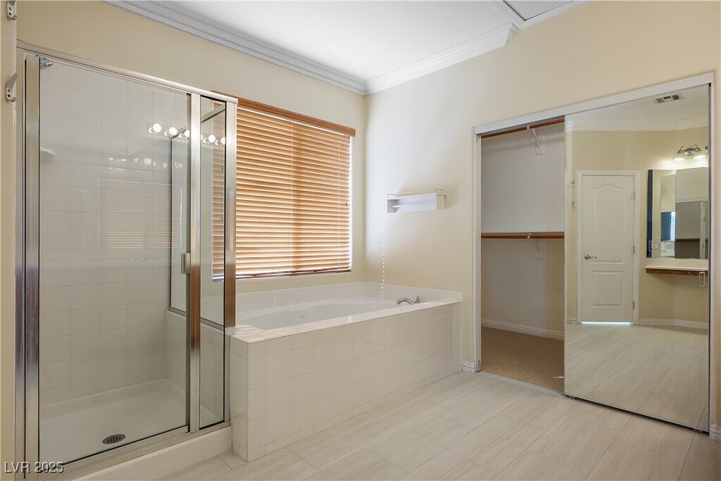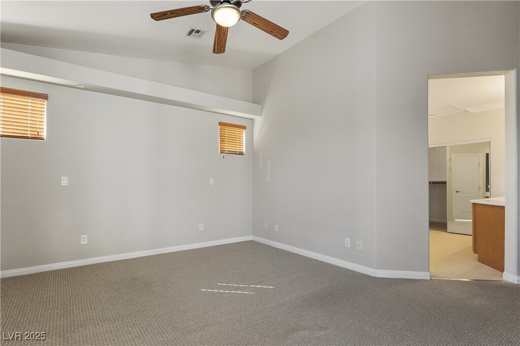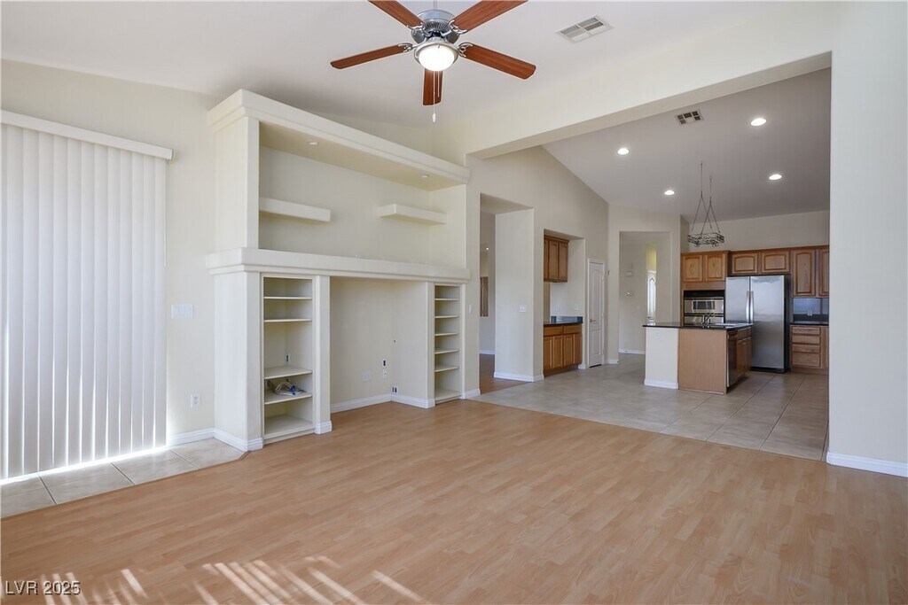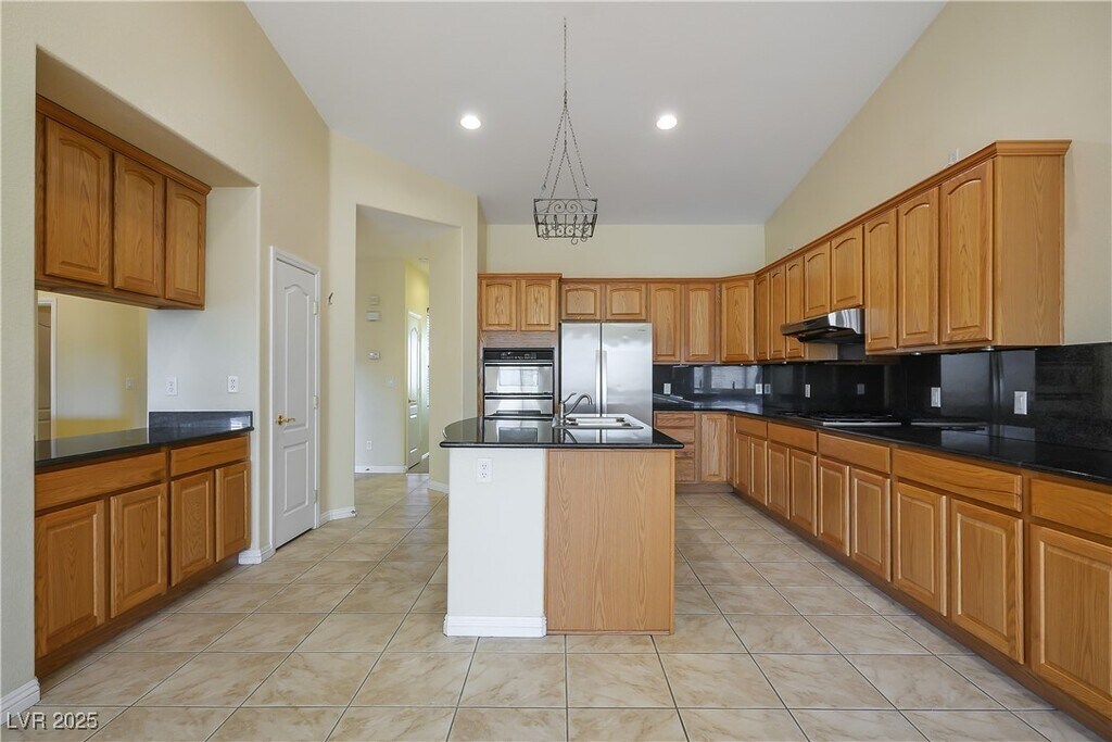 Single-story 4-bedroom, 3-bath home in Northwest Las Vegas. This spacious layout offers approximately 2,400 sq ft of well-designed living space. Features include a formal living and dining area, plus a separate family room for added flexibility. The kitchen is equipped with stainless steel appliances, ample cabinetry, and a center island, ideal for meal prep and entertaining. The generously sized primary suite includes a walk-in closet & an en-suite bath with new tile flooring, dual sinks, a soaking tub, & a separate shower. Secondary bedrooms provide versatile space for work, rest, or guests. Laundry room is located separately for added convenience. Enjoy low-maintenance landscaping in both the front and backyard, along with a covered patio for outdoor enjoyment. Additional highlights include ceiling fans throughout & a three-car attached garage. Conveniently located near parks, shopping, dining, & roadways. Appliances included: New oven, refrigerator, dishwasher, washer, & dryer.