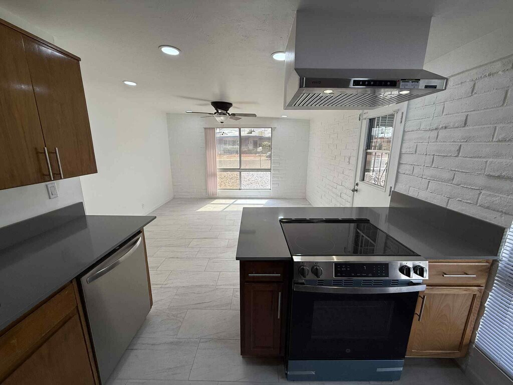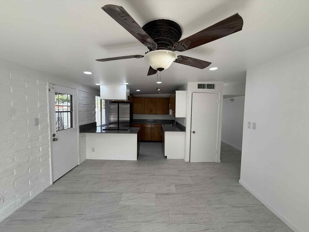 Gorgeous 3BR/2BA eastside home with a fresh remodel! This 1,305 sq. ft. property features brand new tile floors throughout, new paint, and a beautifully updated kitchen with modern finishes. The spacious layout offers a bright living area, ample storage, and comfortable bedrooms. There is a ceiling fan in the dining area off of the kitchen! Washer and dryer are also included for added convince! The huge backyard is fully fenced and provides plenty of space for outdoor entertaining, plus room to park an RV. Conveniently located near schools, parks, shopping, and dining with quick access to main roads. Schedule your showing today and make this your next home!