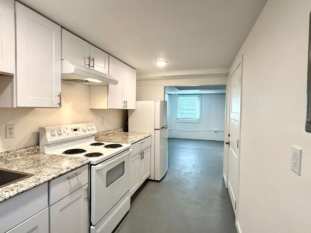 This large studio in a day-light basement has plenty of space to add your own touch. The kitchen has new cabinets, countertops, and appliances. Solid surface floor, a large closet, and good daylight. And -- off-street parking. Standard lease: 12-month Six-month lease with an additional $100 in rent per month Pet policy: Small dogs (25lbs and less) and cats welcome. Additional $500 deposit required. No smoking on property. Utilities: Water, Sewer, garbage included Washer and dryer on site -------------------------------- DISCLOSURES PER CITY OF PORTLAND: - Applications: We will start to accept applications on 02/27/2026 @ 8:00 PM PST. - This is not an Accessible Dwelling Unit as defined by Oregon Structural Building Code and ICCA1171.1 - Application fee is $65 per person; Applications are required for anyone age 18 and over. ** One-month free rent with 12-month lease. (Credit applied 3rd month) ** - Screening criteria: