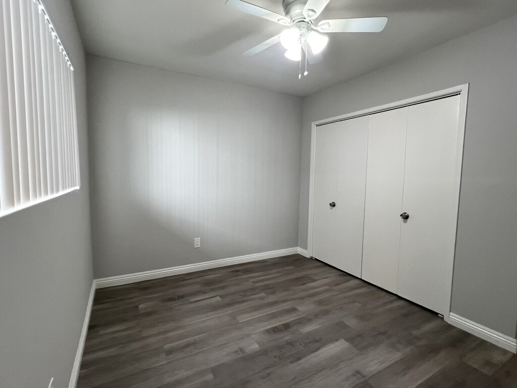 Spacious 2 Bedroom One Story Ground Level Apartment Unit Freshly painted 2-bedroom 1 bathroom ground level apartment with 2 parking spaces and an on-site community laundry room. It features a galley kitchen with Granite counter tops, stove, ample freshly painted cabinets with modern hardware, as well as a dinette area, vinyl plank flooring, a cantilever dining bar that can serve as additional dining space, large closets, tiled bathroom, ceiling fans, and a wall AC unit. It is conveniently located near schools, shopping, and public transportation. No smoking property No Pets (service Animals excepted) Residents pay for gas and electric power Housing Provider pays for water, trash, sewer, and landscaping Minimum 650 Credit Score Requirement Three-Times Monthly Rent Income Requirement Minimum 2-year Employment History Square footage is approximate and is taken from online sources All 21st Century Property Management residents are enrolled in the Resident Benefits Package (RBP) for $50.95/month which includes liability insurance, credit building to help boost the resident's credit score with timely rent payments, up to $1M Identity Theft Protection, HVAC air filter delivery (for applicable properties), move-in concierge service making utility connection and home service setup a breeze during your move-in, our best-in-class resident rewards program and much more! To get the most out of the RBP residents can upgrade into our premium RBP package for ($65.95/month) which includes on-demand pest control. More details upon application. 21st Century Property Management CalDRE: 02198274 Small 10 Unit Community with assigned onsite parking and shared laundry room. Small 10 Unit Community with tenant only assigned onsite parking and shared laundry room.