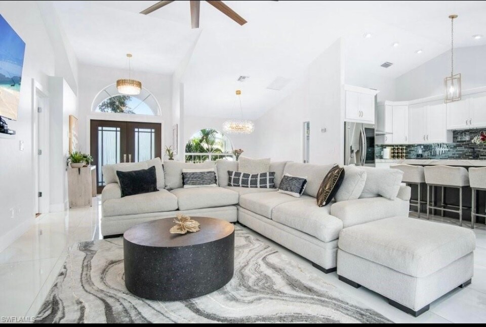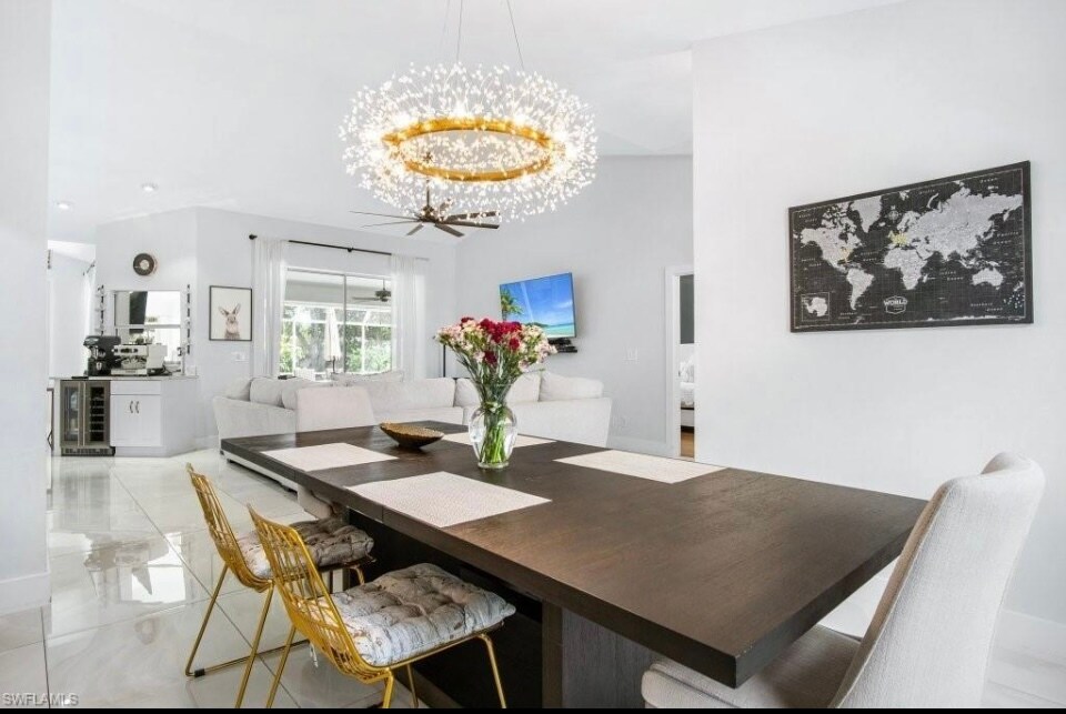 Beautiful updated fully furnished 3 bedrooms, 1 bonus bedroom, 3 full bath plus sunny office off the master bedroom in desirable gated North Naples Villages of Monterey community. All new, stainless steel appliances, fully renovated, reverse osmosis water filtration system in kitchen, tastefully furnished, butterfly garden, zip line, lanai mosquito caged dining area and plenty of fruit trees with edible garden. Wifi, cable, lawn maintenance, pest control included. Tenant pays electric and water. Community boasts resort style pool with cabanas, pickleball court, tennis courts, basketball court, covered playground, outdoor lounge area, pool tables, brand new clubhouse, Mercato a 2 minute drive and 10 minute drive to 5th avenue. Long term and short term leases. Pets considered. No smoking. Background checks and HOA approval is required. $6995/month Contact: Jean Don for more info. Family friendly neighborhood.