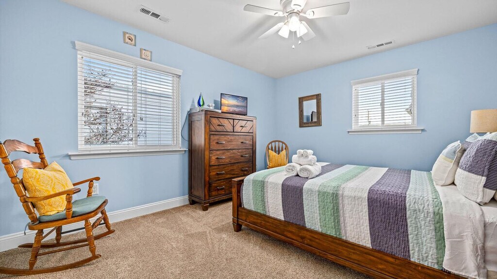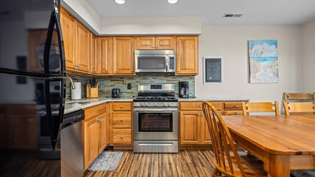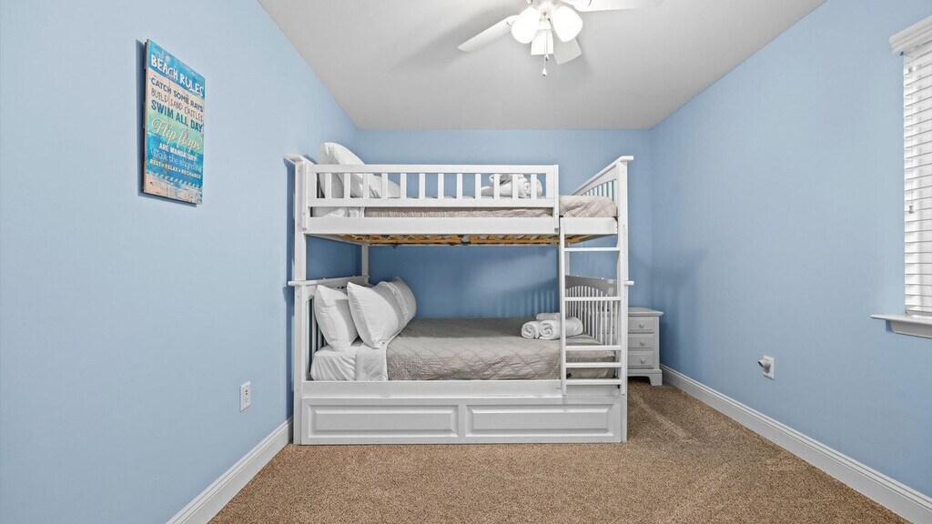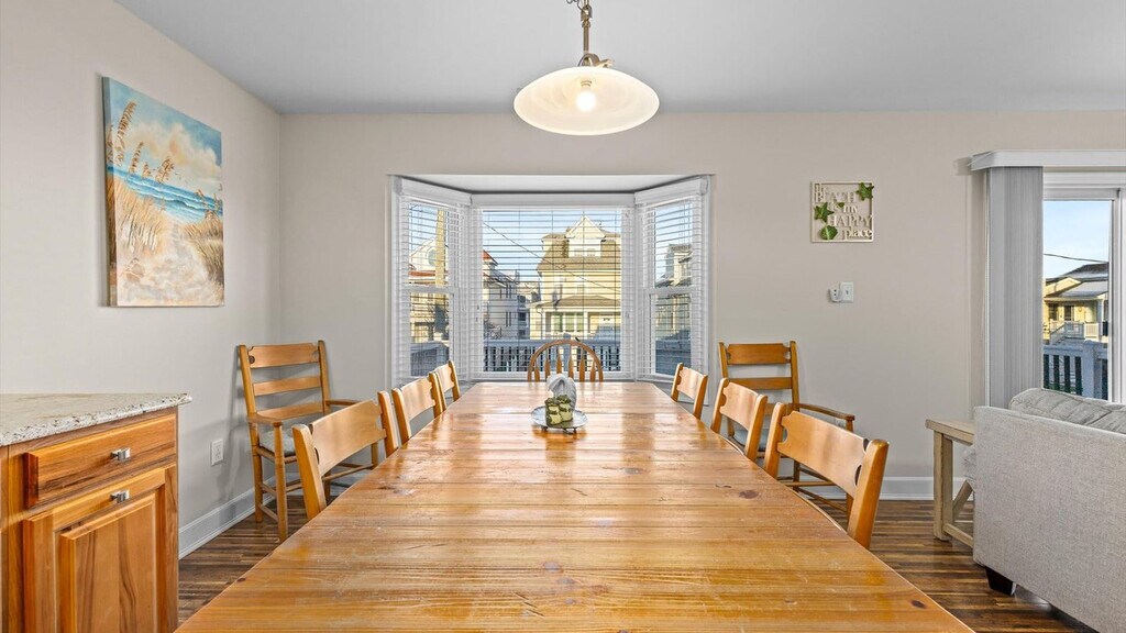 Escape to your perfect Ocean City getaway! Feel at home in this stunning 3-bedroom, 2-bathroom condo on the second floor of the building, just two blocks from the beach, offering space for up to 10 guests. This professionally managed and meticulously cleaned home features an open-concept living area with plush seating, a large TV, and plenty of natural light. The fully equipped modern kitchen includes stainless steel appliances, all cookware and dishes, a toaster, blender, Keurig and drip-style coffee makers, an island with bar seating, and ample counter space. There is also a spacious dining area for enjoying meals together. The primary suite features a king-size bed and a luxurious en-suite bathroom with a walk-in shower. The guest bedroom includes a queen-size bed. The bunk room is great for kids or extra guests with full-over-full bunk beds plus an additional roll-out trundle bed. A queen-size sleeper sofa in the living room is perfect for kids or extra guests. There are two full bathrooms with modern designs, including a walk-in shower in the primary bath and a tub in the hall bath. Enjoy the private balcony to relax and enjoy the ocean breeze or enjoy a meal outdoors. An outdoor shower is available for convenient post-beach day clean up. This home is equipped with central heating and air, and a washer and dryer are in-unit for easy laundry during your stay. Please note that the fireplace is non-functioning and is for decorative purposes only. Off-street parking is available for two vehicles, plus free street parking in the neighborhood. The property includes 10 beach tags collected on a lanyard, 10 beach chairs, 2 coolers, a wagon/cart, and an umbrella. Nestled in the heart of Ocean City at 814 Brighton Pl, this home offers the perfect blend of seaside serenity and convenient access to local attractions. You're just a quick two-block stroll from the sun-kissed sands and sparkling waters of the beach. For dining, explore the diverse culinary scene along the Ocean City Boardwalk, a short walk or bike ride away. Shopaholics can indulge in retail therapy at the unique boutiques and shops that dot the area. The neighborhood itself is known for its friendly atmosphere and charming, well-maintained homes. The iconic Ocean City Music Pier is within easy reach, offering concerts and events throughout the year. For a family-friendly outing, visit the nearby amusement parks and arcades along the boardwalk, all easily accessible from your home base. Quiet hours are between 10 pm and 8 am. Guests must be respectful of neighbors, other guests, and the overall community at all times. Any disturbance incident that results in police involvement may result in the immediate termination of a reservation and removal from the rental without refund or warning. There is a zero-tolerance policy. All properties are absolutely no smoking of any kind, including cigarettes, cannabis, vapes/e-cigs, etc. Smoking is permitted outside and well away from any doors or windows, and all debris must be cleaned up. Any evidence of smoking will be automatically billed an additional cleaning fee. Guests are fully responsible for any damage, excessive cleaning, or disturbances caused by their pets during their stay. By bringing a pet onto the property, you agree to assume all liability for your pet's behavior and to indemnify and hold harmless the property owner and management from any claims or damages arising from your pet. Guests with pets are 100% responsible for keeping their pet under control at all times. Size/weight and breed restrictions may apply. For listings marked “no pets,” this is strictly enforced. If you have a service animal, we kindly ask that you book one of our pet-friendly listings. [SI]