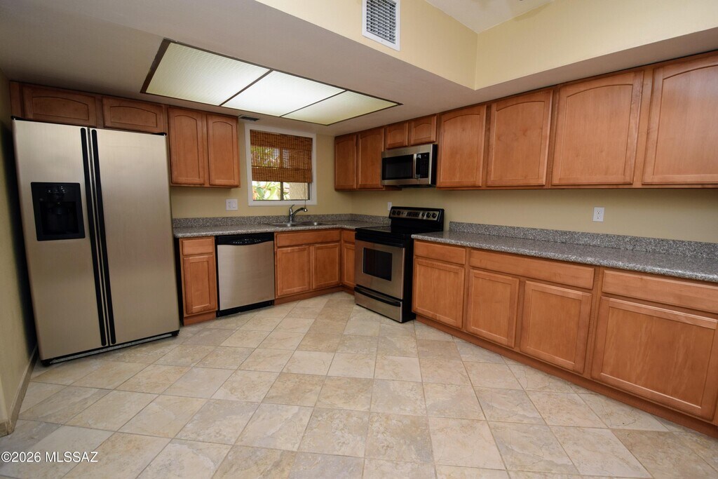 Eastern Heights Village 2 Bed 2 Bath Townhome with attached 2 Car Garage. Tile throughout. NO CARPET. The eat-in kitchen has granite counters, stainless steel appliances, and lots of cabinet and counter space to work with. Open living area with plenty of room for large pieces of furniture. Guest Bath has a tile tub surround and jetted tub. The spacious primary suite has dual closets (one is a walk-in) and a large walk-in shower. Covered patio with views to the east. Full-size indoor washer/dryer. The garage has some built-in storage and shelf space. The community pool is just steps away. This home is offered as NON-SMOKING. Pets are subject to owner approval. MLS ID 22608573