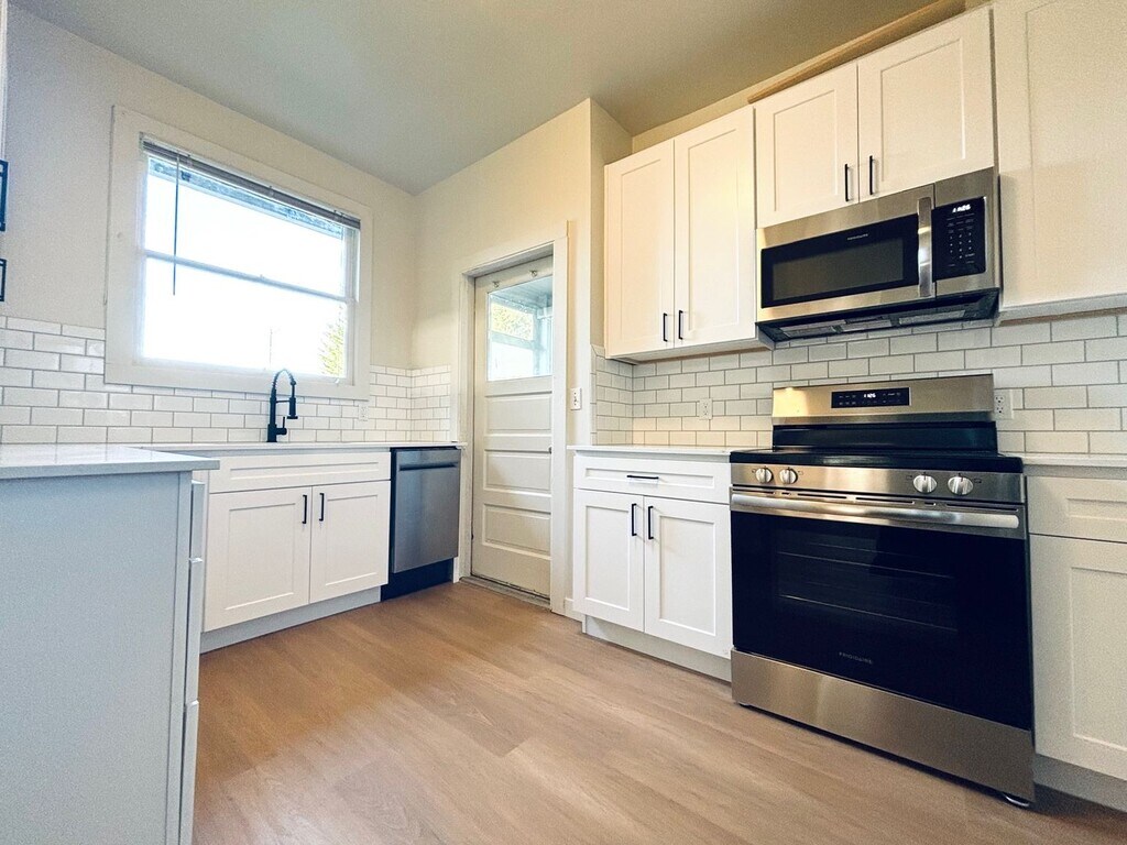 Main level unit of a 1913 house. Great Roosevelt location. Just a few blocks from the light rail station. Close to Greenlake, Maple Leaf, Northgate and easy access to I-5 N and S. Recent upgrades include new hardwood floors, fully remodeled kitchen with new appliances, and remodeled bathroom. Two bedrooms with large closets, large living room with fireplace and a formal dining room, large front porch that accommodate outdoor furniture. High ceilings and large windows in every room. Shared laundry and lots of storage in basement. Shared rear yard (not fully fenced) wonderful for gardening. Backyard access from the kitchen. Street parking. No smoking. Tenant pays all utilities. Water, Sewer, Garbage are billed at a flat rate of $100 per month for single occupancy ($50 each additional occupant). Electricity $75 flat rate per month for single occupancy ($40 each additional occupant). Approval Criteria: Credit score of 700 and 2.5x the rent in income. First month's rent and security deposit prior to occupancy.