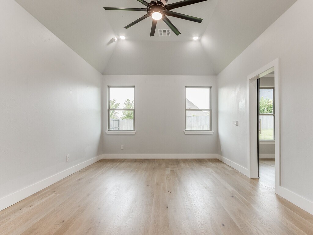 Limited-Time Offer! Enjoy 50% off your first month's rent, or choose to have your last month's rent completely free. Experience luxury living in this stunning 4-bedroom, 3-bathroom single-family home, nestled in the desirable Ridge Creek South neighborhood of Edmond. Built in 2022, this 2,701 sq ft residence offers a perfect blend of modern design and functional living spaces.The open-concept floor plan features a cathedral ceiling with a wood beam in the living room, creating an inviting and airy atmosphere. Enjoy cooking in the spacious kitchen equipped with a large island, quartz countertops, an extra-large walk-in pantry, and ample space for family gatherings. The owner's suite boasts a luxurious bathroom and a walk-in closet that conveniently connects to the utility room. Includes a dedicated study, mudroom, and a 3-car garage, providing ample space for work and storage needs.