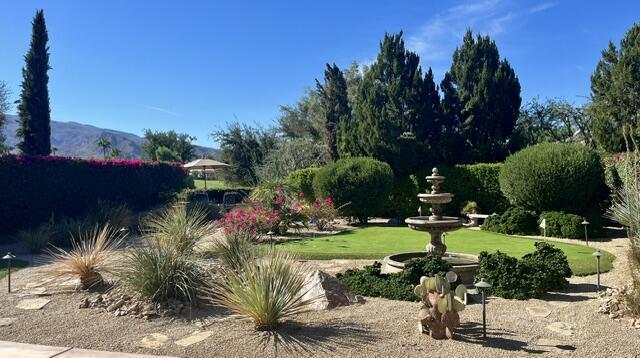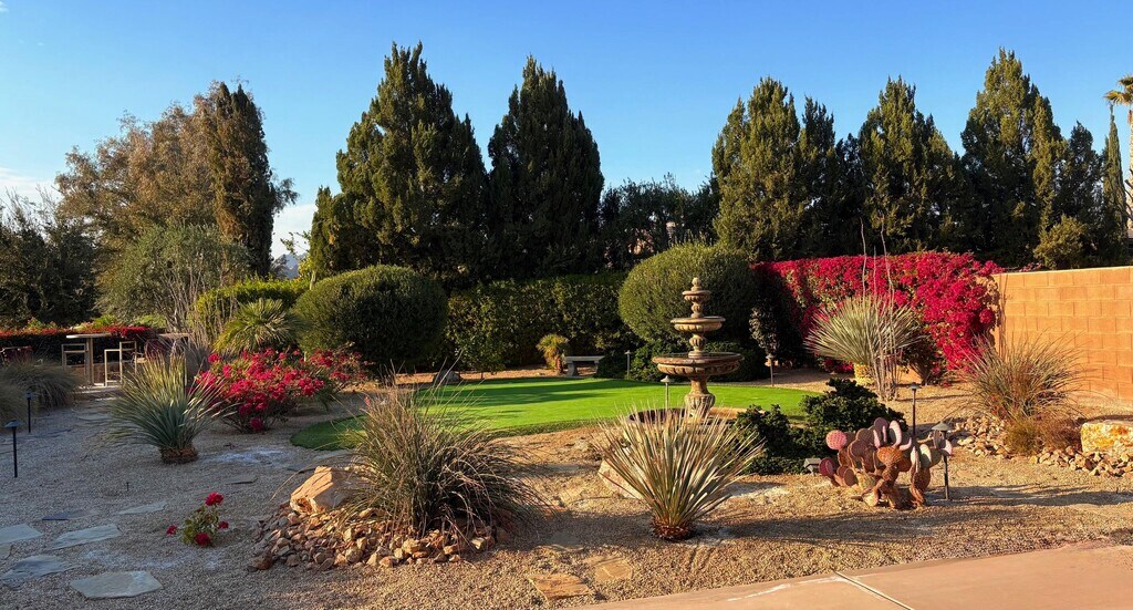 RENTED 1-01-2026 thru 4-30-26 Available all other months. This beautiful Oasis Plan offers two bedrooms two baths. Nicely decorated. Large kitchen fully stoked. The beautiful backyard has its own putting green. You have views of the golf course and gorgeous Santa Rosa mountains. Many evenings can be enjoyed setting by the Firepit and watch the sunset. Located on a large lot and walking distance to the club house. The clubhouse has a full gym,indoor running track. Trilogy is a 55 and older community with pickleball courts,full tennis courts,bocce ball,Library,mini theater,18 hole golf course.