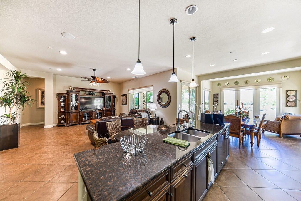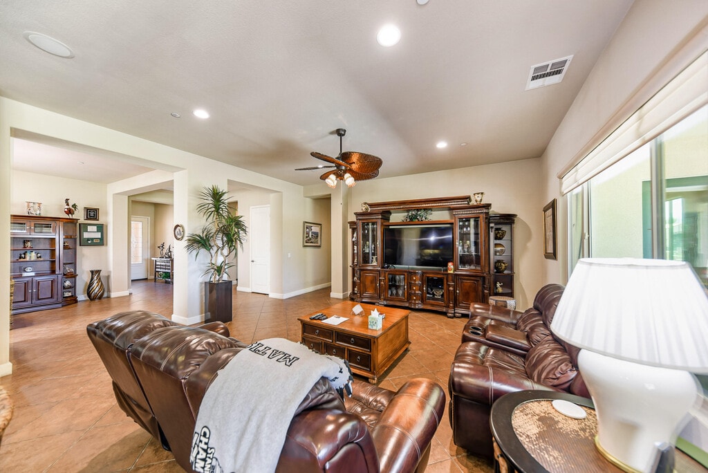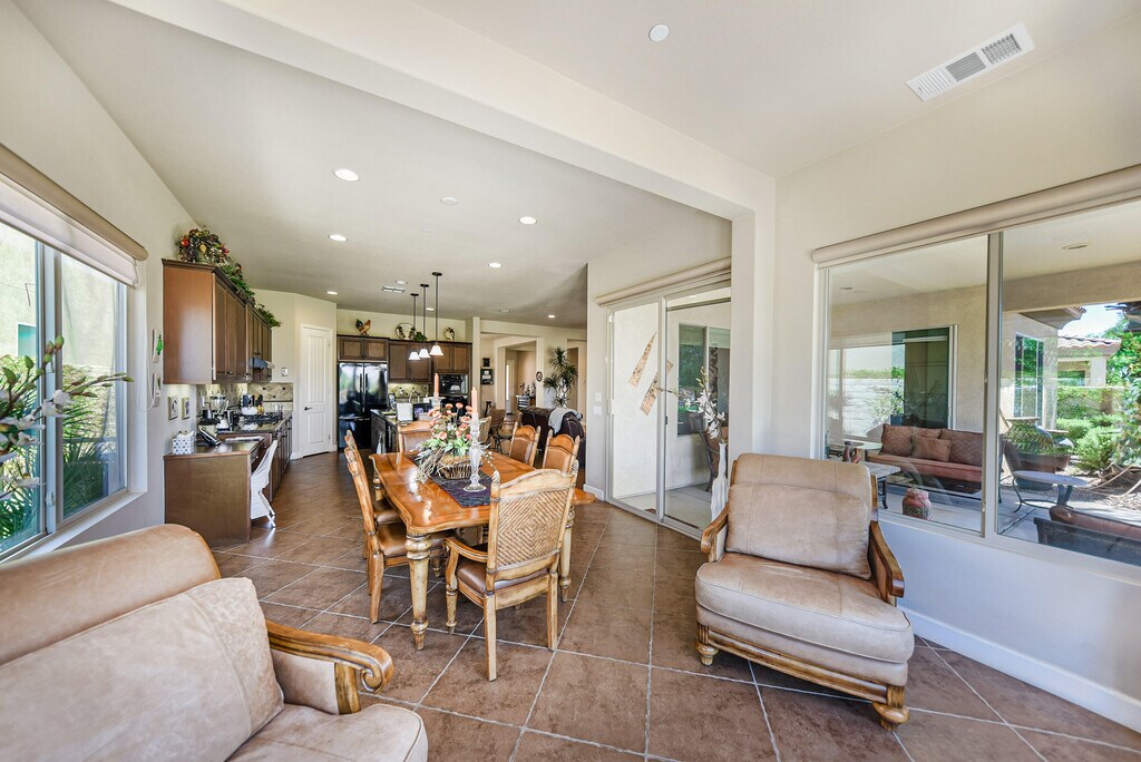 You are going to want everything this extraordinary Gathering floor plan has to offer! This home features West facing mountain views on the Golf course. This spacious home features 3 bedrooms,3 baths,a den,two covered patios and an extended 2 car garage! Did we mention there is tile throughout the home. The kitchen has granite countertops,high quality cabinetry,a nearby formal dining area and additional sitting area at the kitchen island. The master suite has back patio access,a large walk-in closet,and a separate tub and step-in shower. Sun City Shadow Hills has 24 hour gate guarded security,two 18 hole golf courses,two clubhouses with swimming pools,fitness centers,and so much more! Furnished and ideal location! Summer rate available. Leased Jan-March 2026.