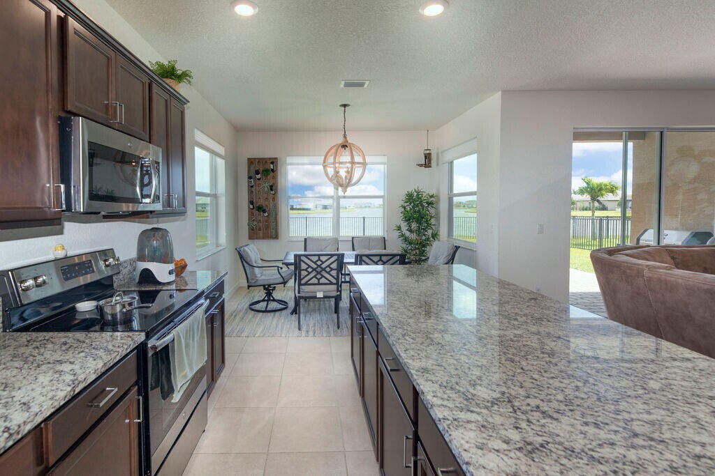 Welcome home to this chic, newly built and stylish Copper Creek stunner. Ideally located, you will adore this family friendly community that boasts easy access to K-8 schools as well as a gorgeous clubhouse with tons of space for activities. A bright an open concept entertainment space welcomes you inside and makes the perfect place to host friends and family. Just beyond the dining area, find a covered lanai overlooking the lake to enjoy your morning coffee or glass of wine. Lawn maintenance is included in rent! 2 small pets permitted.