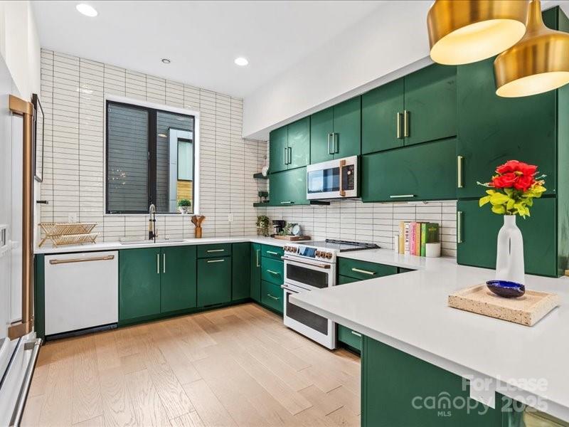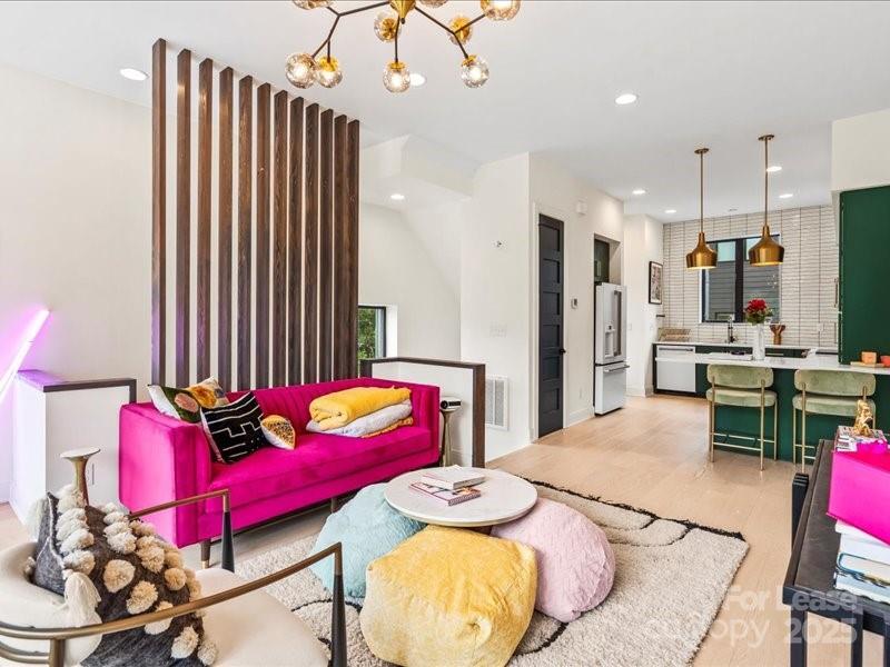 Enjoy this fully furnished 2 full 2-bedroom,2.5-bathroom townhome in the heart of NoDa!! This home offers 1,568 sq ft of stylish,move-in-ready living,spanning three levels with a private balcony and one-car garage. Featuring an open-concept layout,abundant natural light,and a gourmet kitchen with high-end appliances. Every detail has been thoughtfully designed with curated artwork,elegant furnishings,and modern finishes,making it the perfect turnkey space. Just bring your toothbrush! The light rail is a 10-minute walk away,and restaurants,coffee shops,and two grocery stores are all within walking distance. All utilities are included,and 1 small pet is welcome with a pet fee.
