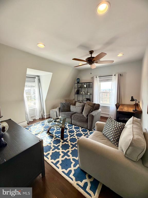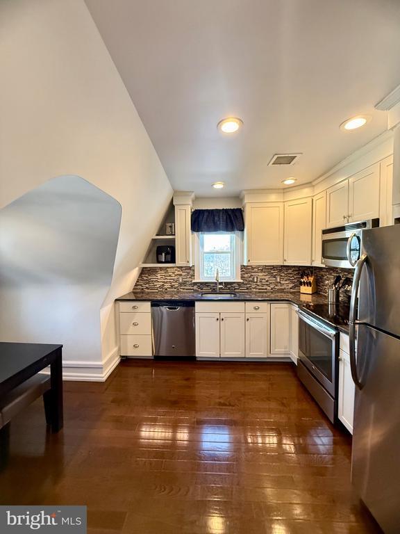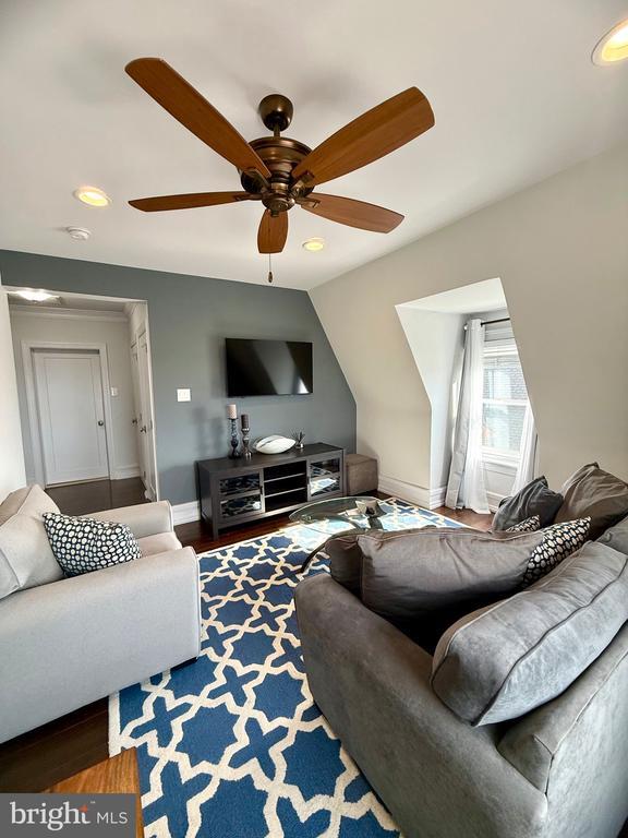 Fully furnished and thoughtfully designed, this 1 bed, 1 bath residence offers a seamless blend of comfort and functionality in one of Conshohocken’s most convenient, walkable locations. Beautiful hardwood floors run throughout, setting the tone for a warm yet modern living space. The living room is completely outfitted with a flat-screen TV, sofa, accent chair, coffee table, dedicated work desk, and curated décor... everything you need to settle in with ease. The spacious bathroom features a tub/shower combination with sleek glass doors and a unique bonus: a hidden closet that leads to a private laundry area with built-in shelving and a stackable washer and dryer. The eat-in kitchen is equipped with stainless steel appliances and a built-in dining nook that maximizes both space and style. The bedroom is generously sized and furnished with a king bed, flat-screen TV, bedside table, and a cozy chair, perfect for slow mornings. A walk-in closet with custom California Closet organizers completes the space. Step outside and you’re exactly where you want to be, directly across from Feine Coffee and StoneRose, with everyday essentials just moments away. A gas station sits one block over, CVS is two blocks away, and Wawa is just a quick drive down the road, making daily errands effortless. Additional highlights include off-street parking for two vehicles in the rear lot. Available for a minimum one-year lease. No pets permitted.