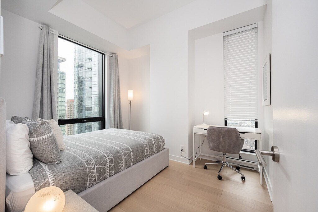 The advertised rate of C$3,315/month is the lowest available price, based on a 30 day(s) stay with a move-in date of May 1, 2026. Rates vary depending on the duration of stay, season, and other parameters. For exact pricing and additional pricing components, please visit our website and enter your desired move-in and move-out dates. The rate is applicable when billed upfront; it can be higher if billed in multiple payments. Feel at home in this luxurious high-rise in downtown Montreal, offering breathtaking city views from a spacious 1-bedroom apartment with one full bath and a private balcony. Expansive 10-foot ceilings invite natural light through large, sunny windows. This apartment boasts high-end finishes throughout and features a Smart TV and high-speed Wi-Fi. Indoor parking with in/out privileges is available for a separate fee depending on the length of your stay. A variety of cleaning services, including biweekly or monthly options, are available for an extra charge. Conveniently located steps from Lucien l’Allier metro station, train access, and the underground Montreal network, this apartment is in the heart of downtown Montreal. No parties or loud noises that can disturb the residents are allowed. Smoking (including cannabis/cigarettes or any kind) is prohibited inside the apartment, on the balcony, or in the building. Please care for your home away from home. [SI]