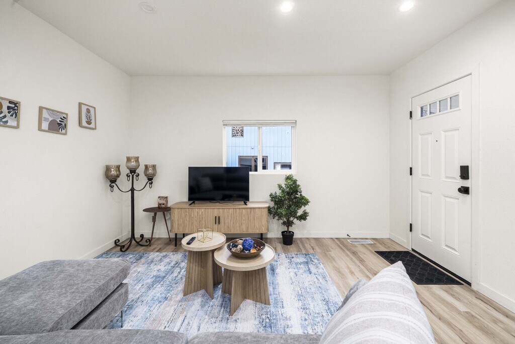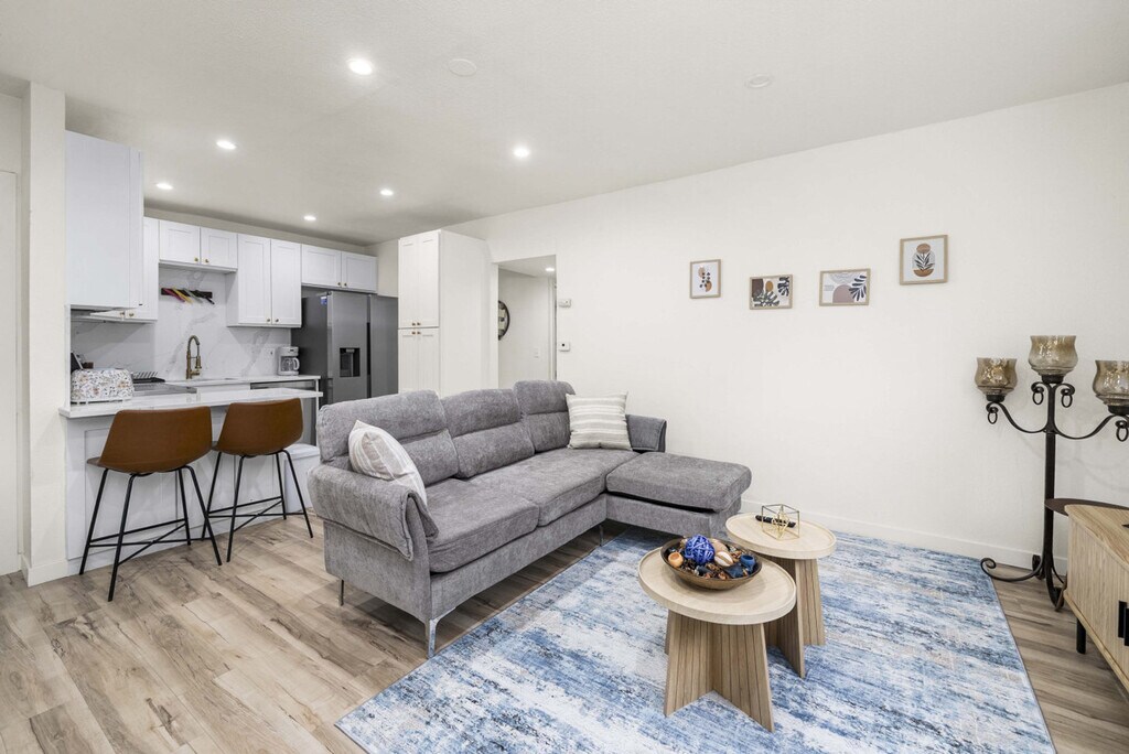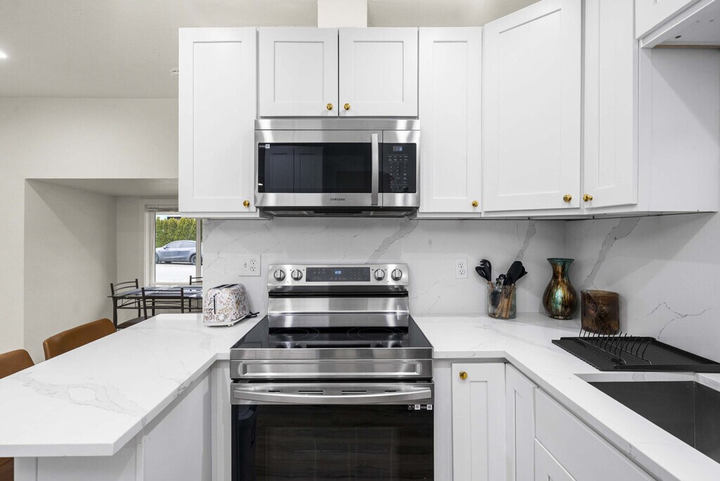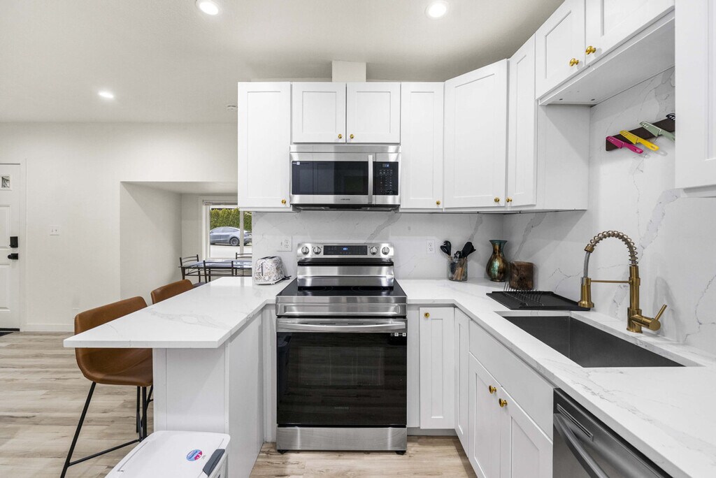 Feel at home in this newly remodeled 3-bedroom home in Southwest Seattle, part of the desirable West Seattle area. There is a short flight of stairs to the main entrance. This single-level home features a modern kitchen, updated bathrooms, and stylish furnishings throughout. The bright, open-concept living and dining area features modern furnishings and a smart TV in the living room. The newly renovated kitchen features stainless steel appliances and cooking essentials. There is also an in-unit washer and dryer for added convenience. A Pack 'n Play and highchair are available upon request for $75 CAD each. A small private driveway is available for 1 car, plus ample free street parking. Located in Southwest Seattle, this home sits within the broader West Seattle area known for its relaxed residential feel, green spaces, and easy access to the waterfront. Enjoy nearby dog parks, local cafés, grocery stores, and scenic walks, while remaining well connected to downtown Seattle and major attractions. It's just 15 minutes from Seattle stadiums, 16 minutes from Alki Beach, 18 minutes from Pike Place Market, 16 minutes from the Space Needle, and 12 minutes from Lincoln Park. The nearest grocery store is a 2-minute drive away. There is a security camera on the exterior of the property. Public bus routes nearby provide direct access to downtown Seattle and surrounding neighborhoods. Driving is convenient via major roads and bridges, and rideshare services are readily available. [SI]