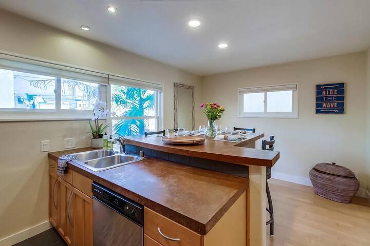 This is a fully furnished property. Bring the whole family to this oversized, comfortable & cheery 2-bedroom home! You're just steps to the ocean and Mission Bay, with miles of boardwalk for walking, biking, or scooting right out of your front door. Enjoy wonderful breakfast, lunch and dinner restaurants - all within walking distance. Mission Beach is an excellent location for ocean sports, family-friendly activities and fun on the sandy shores of the beach or bay. Bring the whole family to this oversized, comfortable & cheery 2-bedroom home! You're just steps to the ocean and Mission Bay, with miles of boardwalk for walking, biking, or scooting right out of your front door. Enjoy wonderful breakfast, lunch and dinner restaurants - all within walking distance. Mission Beach is an excellent location for ocean sports, family-friendly activities and fun on the sandy shores of the beach or bay.