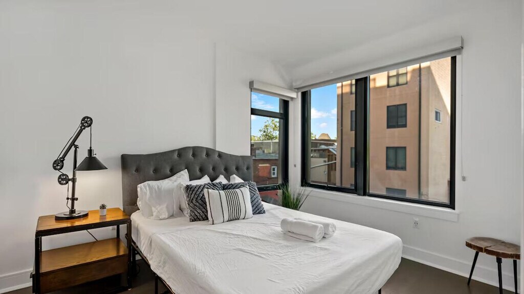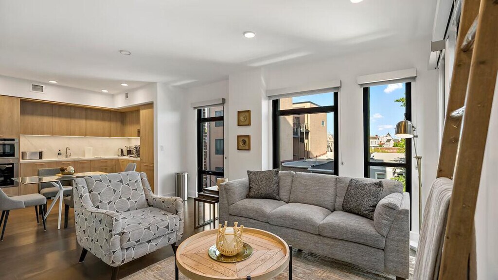 Feel at home in this luxurious 2-bedroom, 2-bathroom apartment in the heart of DC, situated on a quiet corner just steps away from the iconic Shaw area. This sunny apartment offers stunning views and features an open-plan living area filled with natural light, stylish furnishings, and a fully equipped modern kitchen. Parking is available with a daily/monthly fee and must be arranged in advance. Pets are welcome with a daily/monthly fee; please inquire before booking. Experience the vibrant energy of Shaw, with its eclectic mix of dining, shopping, and entertainment just steps from your door. This dynamic area is a favorite among locals, offering top dining, bars, and nightlife for an unforgettable DC experience. Located on a lively street with vibrant weekend energy. [SI]