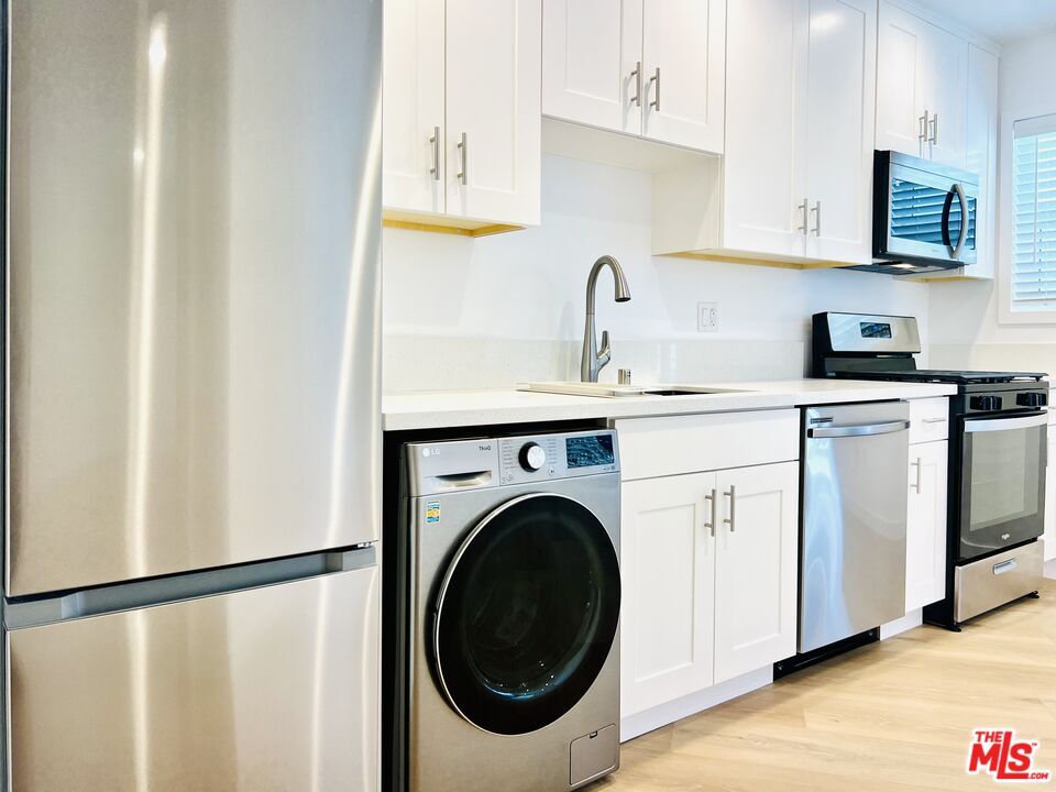 Charming newly constructed one story bungalow style ADU! Bright and fresh junior sized 1 bed 1 bath feels like your own house. Quiet rear location features black and white colors that create a modern feel. Inside you will find wide plank wood style floors throughout, recessed lighting, double pane windows and new blinds. Newly installed AC and Heat mini-split system with remote. Kitchen has sparkling white quartz countertops, new stainless steel appliances including microwave, dishwasher, stove and refrigerator. New compact Washer and Dryer does a full wash to dry cycle so you can set it and forget it! Nice sized bedroom with a walk in closet. Building's courtyard has a nice sitting area for relaxing outside. Small pets welcome under 25 lbs - no deposit or pet fee! Good street parking (only). Great location in North Glendale close to Kenneth Village, the Americana and all the wonderful services Glendale and Burbank have to offer. MLS# 25627363