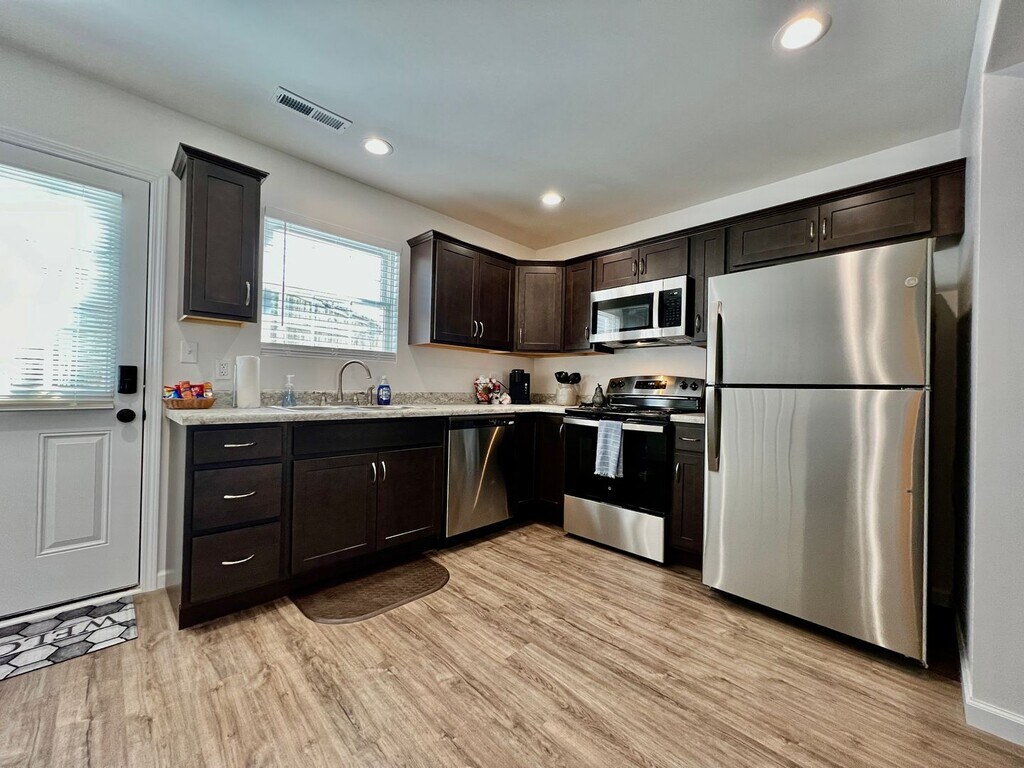 A blend of comfort, style, and convenience greets you as soon as you enter our newly built townhome. While decorating this inviting retreat, we have worked hard to create a home away from home feeling for our guests. The open-concept floor plan in the living space allows room for many guests. Everyone in your group will have room to mingle and relax. The living area is the home's heartbeat, successfully combining the relaxing living room with an inviting dining area and a fully equipped kitchen. Large windows allow plenty of natural light to illuminate the space throughout the day. The new carpet, laminate flooring, and tasteful décor create a feeling of warmth and coziness. Two comfortable bedrooms are designed to offer all the rest you need after a long day of exploring the exciting city of Batesville. The home offers relaxation and comfort, and we can't wait for you to experience it for yourself. ? LIVING ROOM ? The living room is a part of the contemporary open floor plan. See what the chef is up to, help them set the table, or unwind on the cozy sofa with a good book. ? Two Comfortable Leather Sofas ? 65 Inch Smart TV ? Coffee Tables ? Reading Lamps ? KITCHEN & DINING ? Even the most demanding chefs would enjoy preparing delicious meals using numerous state-of-the-art cooking appliances. In addition, spacious countertops provide plenty of workspaces for you to prepare delicious homemade delicacies. ? Microwave ? Stove ? Oven ? Toaster ? Refrigerator/Freezer ? Keurig Coffee Maker ? Dishwasher ? Sink - Hot & Cold Water ? Trays ? Glasses ? Silverware ? Pots & Pans Serve those delicious meals on the adjacent dining table and let the smell of freshly cooked homemade delicacies invite everyone over for a tasty feast. If you don't feel like cooking, you can always check out one of the many nearby restaurants in the area. ? Dining Table with Seating for 6 ? SLEEPING ARRANGEMENTS - 2 BEDROOMS ? Two tastefully furnished bedrooms are designed to provide hotel-like comfort and convenience needed to relax and rest so you can remain energized and do everything you have planned the next day. ? Master Bedroom: King-Size Bed ? Bedroom 2: Queen-Size Bed All bedrooms are equipped with a similar set of amenities. ? Premium Pillows, Linens, and Sheets ? Closets with Hangers and Shelves ? Dressers with Spacious Drawers ? Night Stands with Reading Lights ? 55-inch Smart TV in all bedrooms ? BATHROOMS ? One half bath located on the main floor of the home, off the kitchen. A full bathroom caters to the two bedrooms upstairs. You don't have to worry about packing towels or essential toiletries, as we have already prepared these for you. ? Bathtub with a Shower ? Vanity ? Mirror ? Toilet ? Towels ? Hair Dryer ? Essential Toiletries Let us know if you have any questions regarding this beautiful home. We are more than happy to assist!