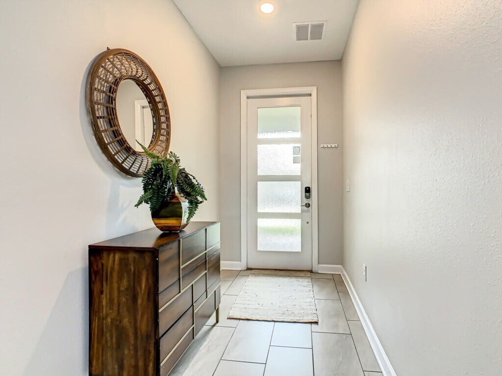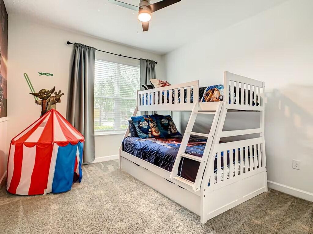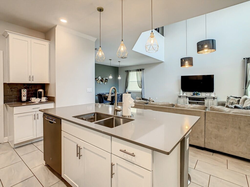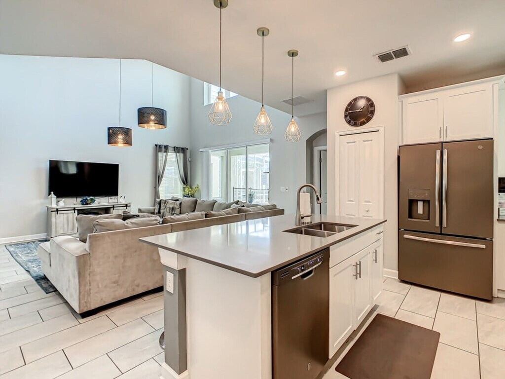 Welcome to Cabot Cliff Memories, a luxurious 5-bedroom, 5-bath villa located in the world-renowned Champions Gate Golf Community. With room for 10 guests, this sunlit home offers themed bedrooms, a private pool and spa, and a fully equipped kitchen. Enjoy the nearby major theme parks, including Disney just 20 minutes away, or relax at the Oasis Clubhouse with its lazy river, fitness center, and tiki bar. Perfect for families and groups, your unforgettable vacation starts here! Relax in the spacious living room with a large sectional, perfect for family time. The open-plan layout includes an 8-seat dining table and a 4-seat breakfast bar, ideal for group meals or midnight snacks. The kitchen is fully equipped with modern appliances, a large island, and all the tools needed to prepare delicious meals during your stay. The upstairs loft offers a sectional couch and a large flat-screen TV, perfect for movie nights or binge-watching your favorite shows. Step outside to your private screened pool and spillover spa, complete with outdoor furniture and lounge chairs. Optional pool heating is available for an additional fee. Driveway parking is available for 1 car. Located just 20 minutes from Disney and close to Universal Studios, SeaWorld, and other attractions. Champions Gate also offers local dining, shopping, and entertainment options. No pets, parties, or outside visitors allowed. Check-in is at 4 PM and check-out is at 10 AM. Driveway parking is available for 1 car and there is no street parking. As a guest of the Champions Gate community, enjoy access to the Oasis Clubhouse, featuring a resort-style pool, lazy river, splash park, tiki bar, fitness center, and even a movie theater. Golf enthusiasts will love the two Greg Norman-designed golf courses.