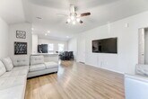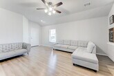 This charming quiet, one-year-old brick home offers a spacious open floor plan perfect for comfortable living. The updated kitchen features sleek quartz countertops, a gas range, stainless steel appliances, and luxury vinyl plank flooring throughout. The large primary suite is a standout, boasting a walk-in closet, a spacious shower, and ample countertop space for all your needs. Ceiling fans and recessed lighting throughout the home ensure a comfortable atmosphere. Additional perks include a washer and dryer included in the lease, a large backyard with a patio perfect for outdoor entertaining, and a 2-car attached garage. Available for move in MAY 16, 2025. Listing posted by Texas Properties [SYNDID 4121368 10132025]