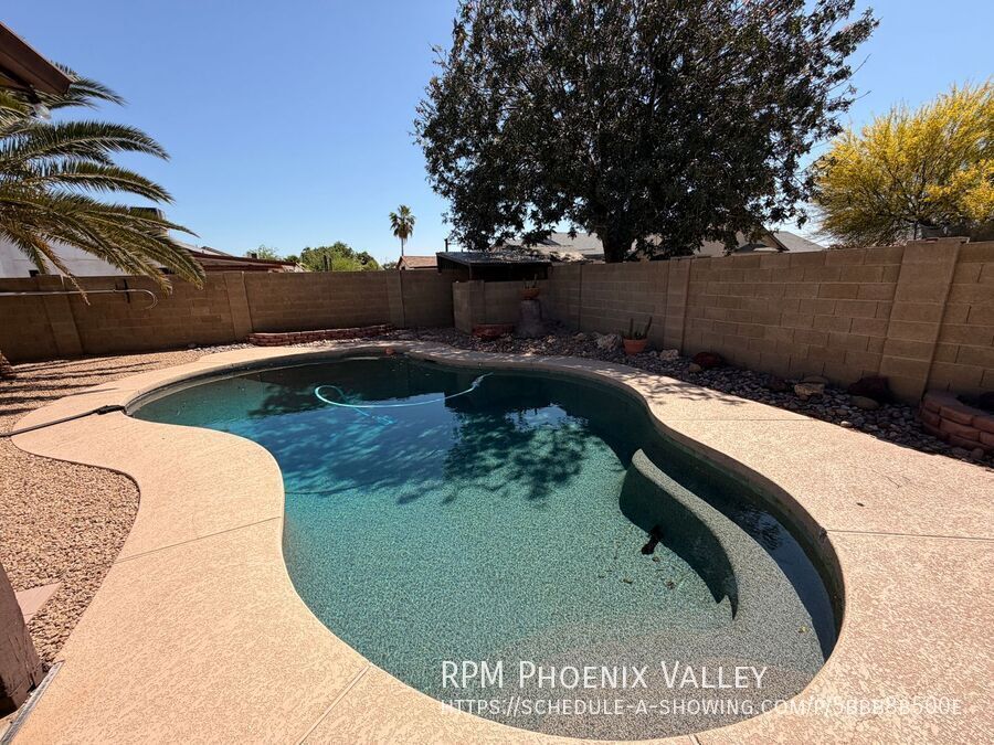 Single-level 4-bedroom, 2-bathroom home with no HOA, offering a functional layout and well-maintained features throughout. The living room includes vaulted ceilings for an open feel, along with a separate family room that features a fireplace. The dining area connects to the backyard through a sliding glass door, leading to a spacious outdoor area with covered patio, a pool and neatly maintained landscaping. The kitchen is equipped with a full stainless steel/black appliance package, granite countertops, and a pantry cabinet for additional storage. Two bedrooms have been recently updated with fresh paint and new wood-look vinyl flooring. One of the bedrooms offers flexibility for use as a home office or exercise room. The primary bedroom features new wood-look tile flooring, dual closets, and windows with shutters. The private bathroom includes double vanity sinks and a large walk-in shower. The hallway bathroom is designed with double sinks and a tub/shower combination. Located near shopping, dining, schools, parks, and quick freeway access. Additional amenities include a storage room with laundry hookups and a 2-car garage. Friendly to maximum 2 spayed/neutered pets with a $350 deposit per pet. We do not list on CRAIGSLIST OR FACEBOOK MARKETPLACE SO IF YOU SEE IT ON THERE IT IS A SCAM $50.00 non-refundable application fee per person, age 18 or over. Base rent doesn't include 3% monthly admin fee. Full security deposit of $2,299 is due upon approval. Move in date must be between 7 & 30 days from lease signing/payment of security deposit. If moving in on or after the 5th then pro-rated current month rent is due as well as the following full month. All rent is due 7 days prior to move in. 2 Car Garage Fridge Pool Range/Stove Sprinklers Washer/Dryer Hookups