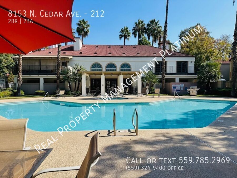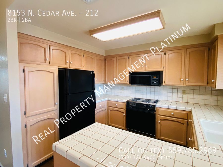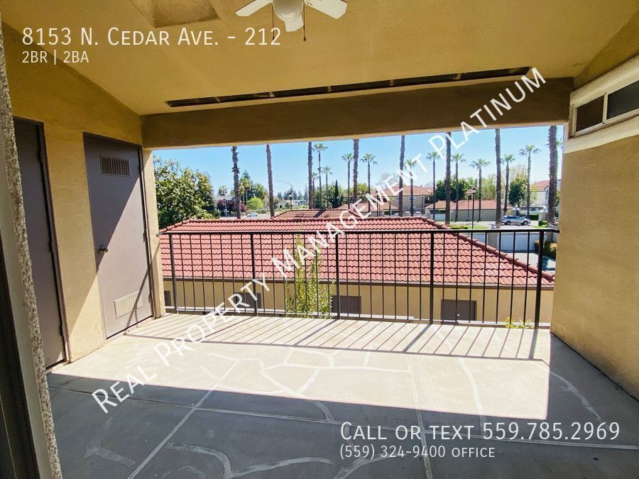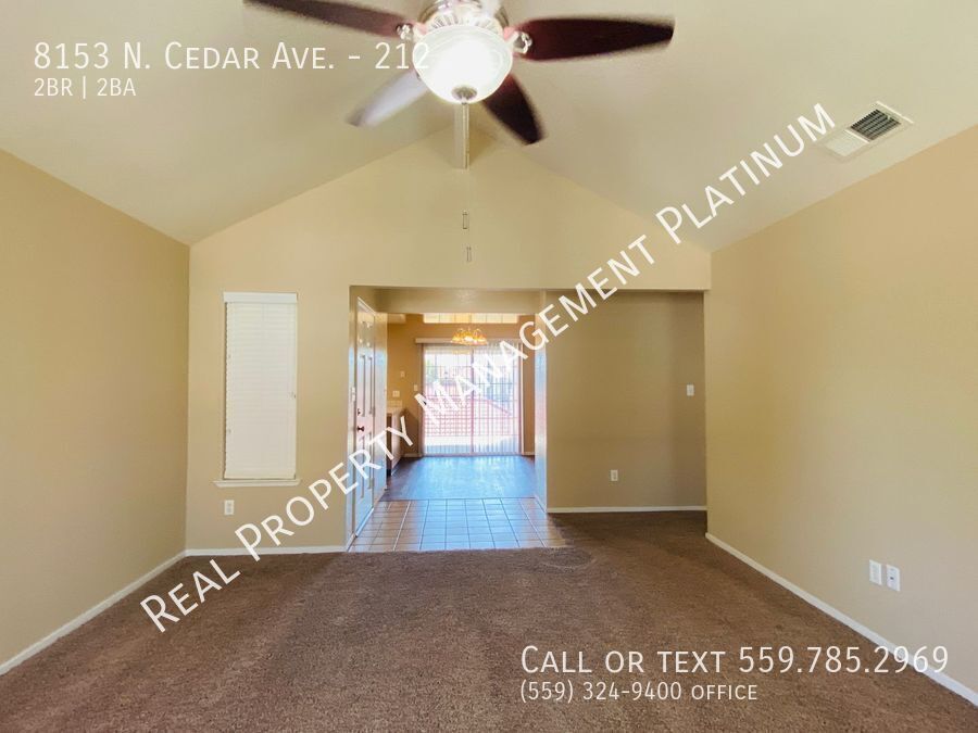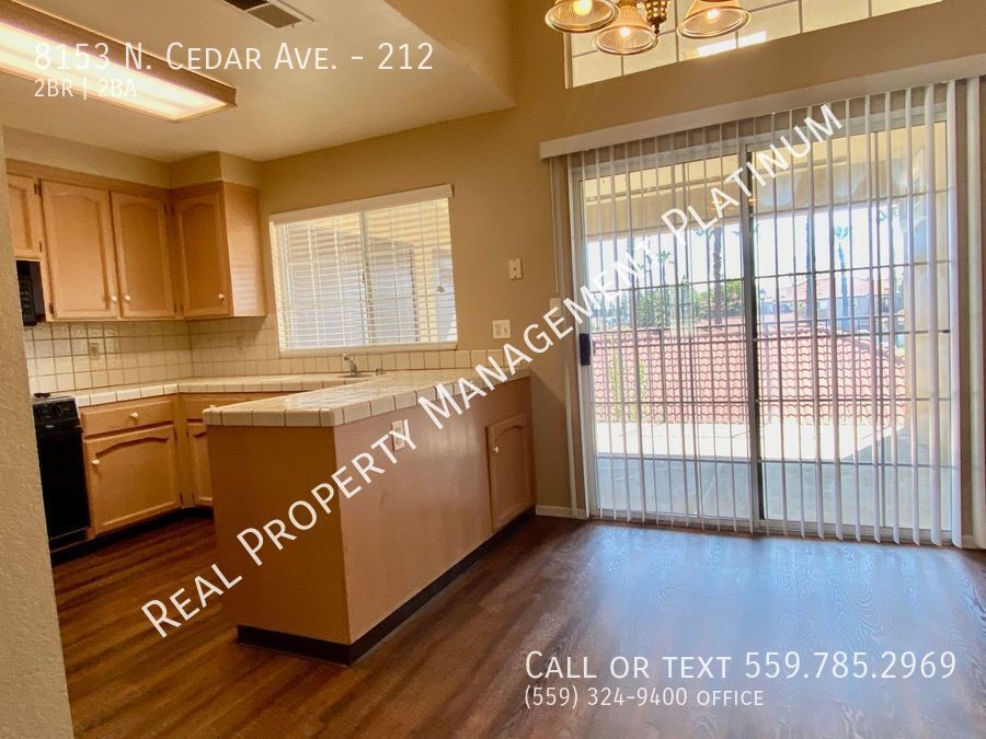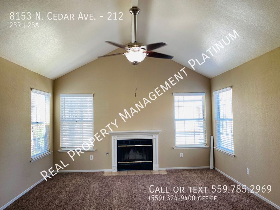 CLICK HERE to schedule a showing: 2 Bed | 2 Bath| 1,141 Sq. Ft. | Upstairs unit Great room has vaulted ceiling, ceiling fan and gas fireplace. Kitchen has refrigerator, electric range/oven, microwave and dishwasher. Dinette area has built in cabinets and sliding door to the patio. Main bedroom has a walk in closet and ceiling fan. Main bath has dual vanities and tub/shower. Electric washer and dryer hookups in hall closet. Guest bathroom has a single vanity and tub/shower. One additional spacious bedroom with bay windows. Sliding door from the dining room opens to a big cement patio with an extra storage space. One car detached garage. Credit score above 650 REQUIRED. Small pet considered with deposit and pet rent. No Smoking. Tenant responsible for PG&E. Water, sewer, trash services are included with rent. HOA included. Enjoy the amenities of the clubhouse pool, jacuzzi area, rec room and gym. Cross streets are Cedar and Nees. Clovis schools. Call to schedule a showing or to contact the office. DRE# 01901101. All information is deemed reliable but not guaranteed and is subject to change. Dre# 01901101 Non Smoking Renter's Insurance Required Water/Sewer And Trash Included Water/Sewer/Trash Included