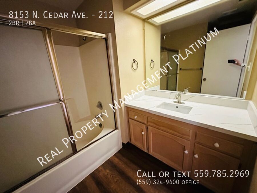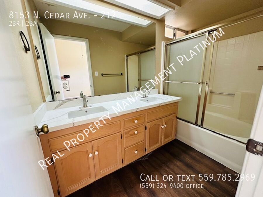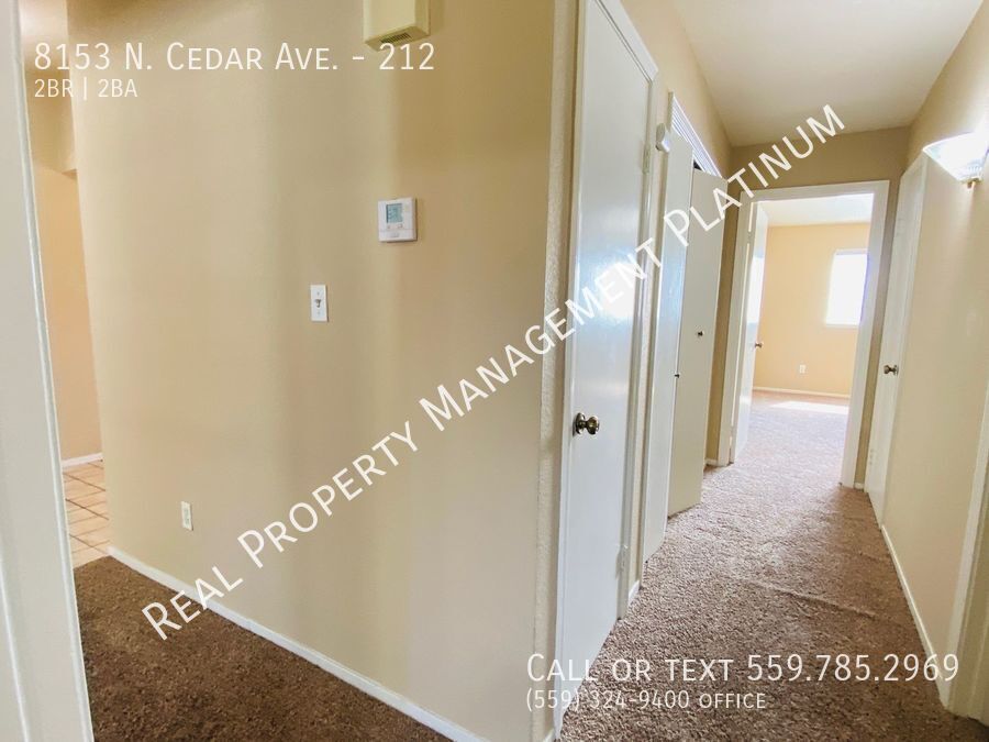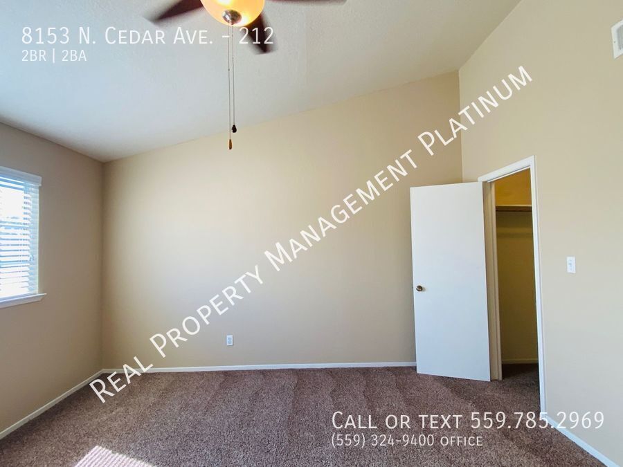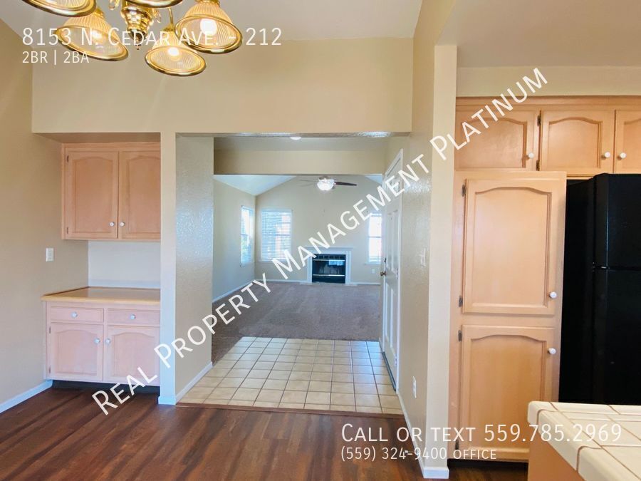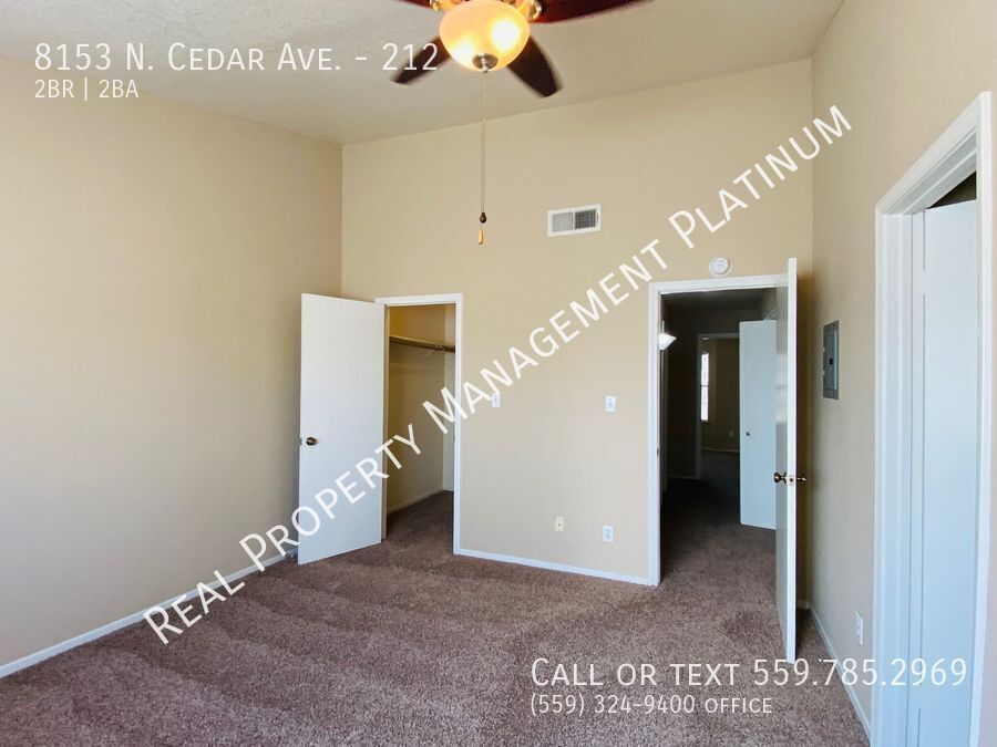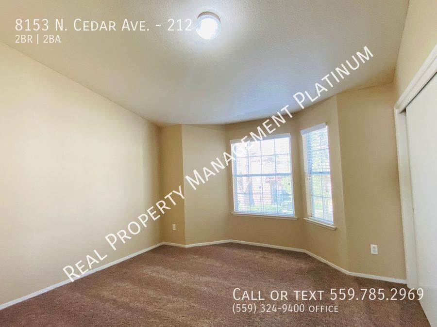 CLICK HERE to schedule a showing: 2 Bed | 2 Bath| 1,141 Sq. Ft. | Upstairs unit Great room has vaulted ceiling, ceiling fan and gas fireplace. Kitchen has refrigerator, electric range/oven, microwave and dishwasher. Dinette area has built in cabinets and sliding door to the patio. Main bedroom has a walk in closet and ceiling fan. Main bath has dual vanities and tub/shower. Electric washer and dryer hookups in hall closet. Guest bathroom has a single vanity and tub/shower. One additional spacious bedroom with bay windows. Sliding door from the dining room opens to a big cement patio with an extra storage space. One car detached garage. Credit score above 650 REQUIRED. Small pet considered with deposit and pet rent. No Smoking. Tenant responsible for PG&E. Water, sewer, trash services are included with rent. HOA included. Enjoy the amenities of the clubhouse pool, jacuzzi area, rec room and gym. Cross streets are Cedar and Nees. Clovis schools. Call to schedule a showing or to contact the office. DRE# 01901101. All information is deemed reliable but not guaranteed and is subject to change. Dre# 01901101 Non Smoking Renter's Insurance Required Water/Sewer And Trash Included Water/Sewer/Trash Included
