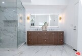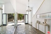Extensively renovated contemporary retreat nestled in a serene canyon setting, conveniently located off of Laurel Canyon and minutes from the Sunset Strip. This spacious 3-bedroom, 4-bathroom home features an open floor plan with expansive living and dining areas, two sleek fireplaces and a dedicated office with custom built-ins. The newly remodeled gourmet kitchen boasts all new stainless steel appliances, a breakfast bar, and opens seamlessly to a den that flows out to a large private patio and landscaped rear yard perfect for indoor-outdoor living. The generous primary suite offers a sitting area with fireplace, dual walk-in closets, and a stunning new spa-style bath with double vanities, a walk-in shower, and soaking tub. Two additional bedrooms share a beautifully renovated hallway bath. Walls of glass and multiple patios flood the home with natural light, creating bright, airy spaces throughout. Additional features include a separate laundry room, two powder rooms, generous storage, and two oversized garages (392 and 369 sq ft). Located in a highly rated public school district. MLS# 25601439