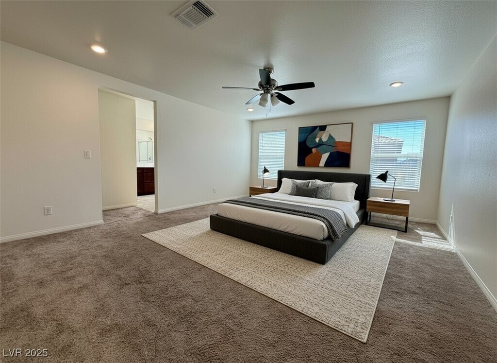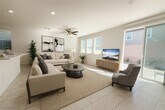 Beautiful, newer home, freshly painted interior, in a gated community located in the fast-growing SW of Las Vegas area, features 5 bedrooms/3 baths including one bedroom/full bathroom downstairs and loft upstairs. Modern, open floor-plan, spacious living space overlooks the gourmet kitchen, the kitchen has a big island, beautiful white quartz countertops, pantry and stainless appliances, the large master suite features a massive walk-in closet and bathroom with dual sinks and separate shower & tub, loft upstairs is perfect for use as an indoor recreational area or lounge. Short commute to Strip, near shopping, dining, entertainment, school and more. The rent includes $48 sewer/trash fee.