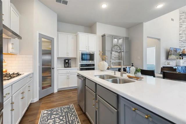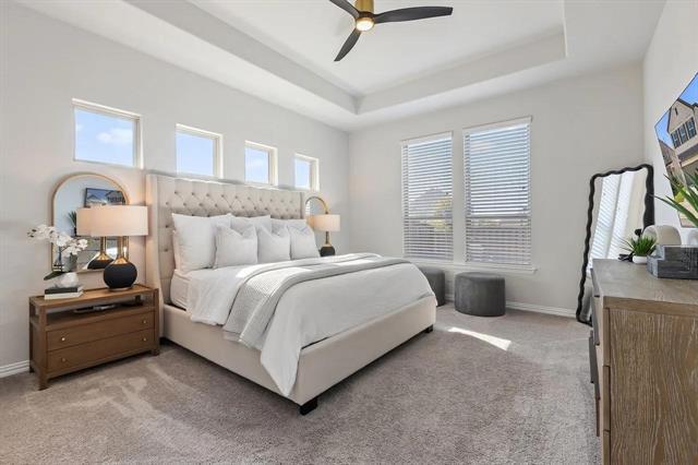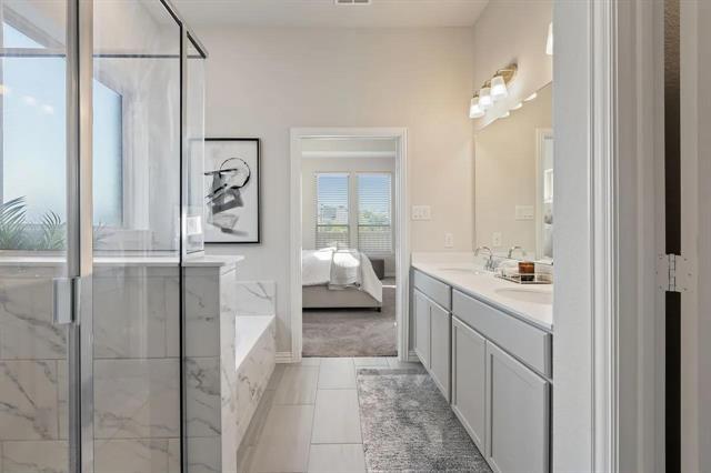 Located in the Light Farms community!!!This north-facing, well-maintained home offers approximately 2,450 square feet of thoughtfully designed living space. The floor plan includes three bedrooms and 3.5 bathrooms, with an upstairs bedroom suite featuring a private bath and walk-in closet—ideal for guests or extended family living arrangements. The open-concept layout connects the living room, dining area, and kitchen, creating a functional space for daily living and entertaining. The kitchen features white cabinetry, ample counter space, and a gas cooktop. The first-floor primary suite includes a tray ceiling and an ensuite bath with a soaking tub, walk-in shower, and dual sinks. Upstairs you’ll find a game room along with two secondary bedrooms. The backyard includes a covered patio and open yard space suitable for outdoor activities. Light Farms offers community amenities such as a clubhouse, swimming pools, fitness center, pickleball and tennis courts, playgrounds, walking trails, and an on-site restaurant. Front yard maintenance is included in HOA dues. Buyers are encouraged to verify all HOA details and amenity information. The property is zoned to Prosper ISD. An elementary school is located within the community. Conveniently situated near Preston Road, the home provides access to nearby shopping and dining options. Future commercial developments in the area are subject to change. Approximately a 5-minute drive to H-E-B (per Google Maps, subject to traffic).