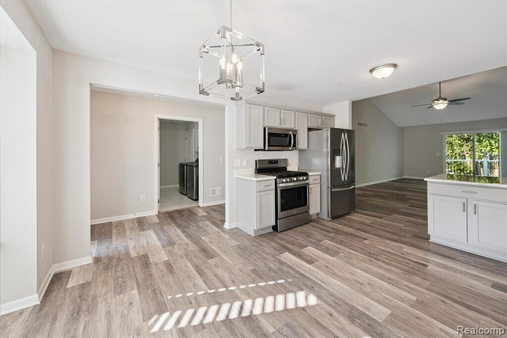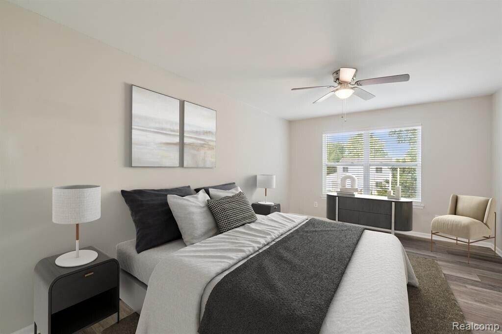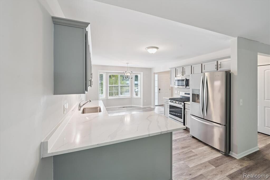 Beautifully appointed 3-bedroom, 2-bath condo that perfectly balances comfort and style. The open-concept design has vaulted ceilings and a spacious living room with a cozy fireplace, creating an inviting space for both relaxing and entertaining. Sunlight pours through the windows, highlighting the seamless flooring and bright, airy feel throughout. The kitchen is a standout with stainless steel appliances, stunning quartz countertops, and generous workspace for cooking and gathering. Each bedroom is larger than expected, offering great closet space and well-designed bathrooms. Convenient main floor living includes a primary suite and nearby laundry. A 2-car attached garage adds extra ease, making this home as practical as it is beautiful. Lease application available online via RentSpree. Property is also available for sale under MLS ID# 2