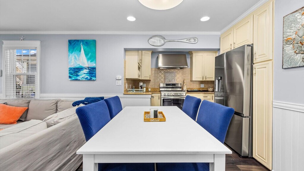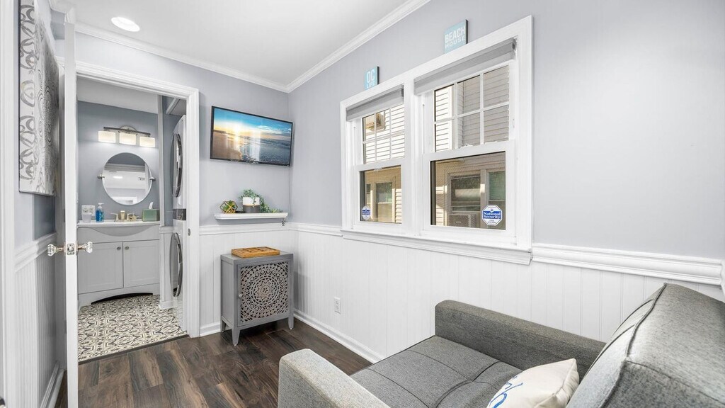 Escape to this modern 2-bedroom condo in beautiful Ocean City, NJ, a stone's throw from the beach! Feel at home in this carefully curated and professionally managed space, designed to ensure a memorable stay. The open-concept living area features comfortable seating, a large TV, and plenty of natural light. The fully equipped modern kitchen includes stainless steel appliances, all cookware and dishes, a toaster, blender, Keurig coffee maker, and ample counter space. There is also a dining area for enjoying meals together. This condo also features a ground-level patio with seating and a gas fire pit, as well as a private outdoor shower for convenient post-beach day clean up. Enjoy the convenience of a washer and dryer in-unit, central heating, and air conditioning. Linens, towels, and essential amenities are included, with a starter supply of paper towels, toilet paper, hand soap, dish soap, dishwasher detergent, laundry detergent, trash bags, and shower products like body wash, shampoo, and conditioner. Enjoy beach gear including 6 beach tags on a lanyard, 6 beach chairs, 1 cooler, a wagon/cart and an umbrella. Nestled in the northern end of Ocean City, this condo offers a prime location with easy access to everything you need for a memorable vacation. You're just a short walk (less than 2 blocks) from the beautiful beaches and the start of the boardwalk, perfect for sunbathing, swimming, and building sandcastles. Explore the local culinary scene with a variety of restaurants nearby, from casual eateries to upscale dining experiences. You'll also find convenient shops and stores nearby for all your shopping needs, including groceries, souvenirs, and beach essentials. The neighborhood itself is friendly and well-maintained, offering a safe and welcoming atmosphere for families and friends. Quiet hours are between 10 pm and 8 am. Guests must be respectful of neighbors and the community at all times. Any disturbance incident that results in police involvement may result in the immediate termination of the reservation and removal from the rental without refund or warning. There is a zero-tolerance policy. All properties are absolutely no smoking of any kind, including cigarettes, cannabis, vapes/e-cigs, etc. Smoking is permitted outside and well away from any doors or windows, and all debris must be cleaned up. Any evidence of smoking will be automatically billed an additional cleaning fee. Guests are fully responsible for any damage, excessive cleaning, or disturbances caused by their pets during their stay. By bringing a pet onto the property, you agree to assume all liability for your pet's behavior and to indemnify and hold harmless the property owner and management from any claims or damages arising from your pet. Guests with pets are 100% responsible for keeping their pet under control at all times. Size/weight and breed restrictions may apply. For listings marked “no pets,” this is strictly enforced. If you have a service animal, please book one of the pet-friendly listings. All guests will be required to upload a valid photo ID (driver's license, passport, government ID) and verify with a “selfie” to the trusted partner's secure, data encrypted portal before being allowed to check in. Please be advised there are security cameras present on this listing in the following locations: exterior front entryway/doorbell camera, exterior rear entrance and deck/patio/driveway area. These cameras may record audio & video footage 24/7. There are no recording devices of any kind inside the home or apartment or any other private area. [SI]