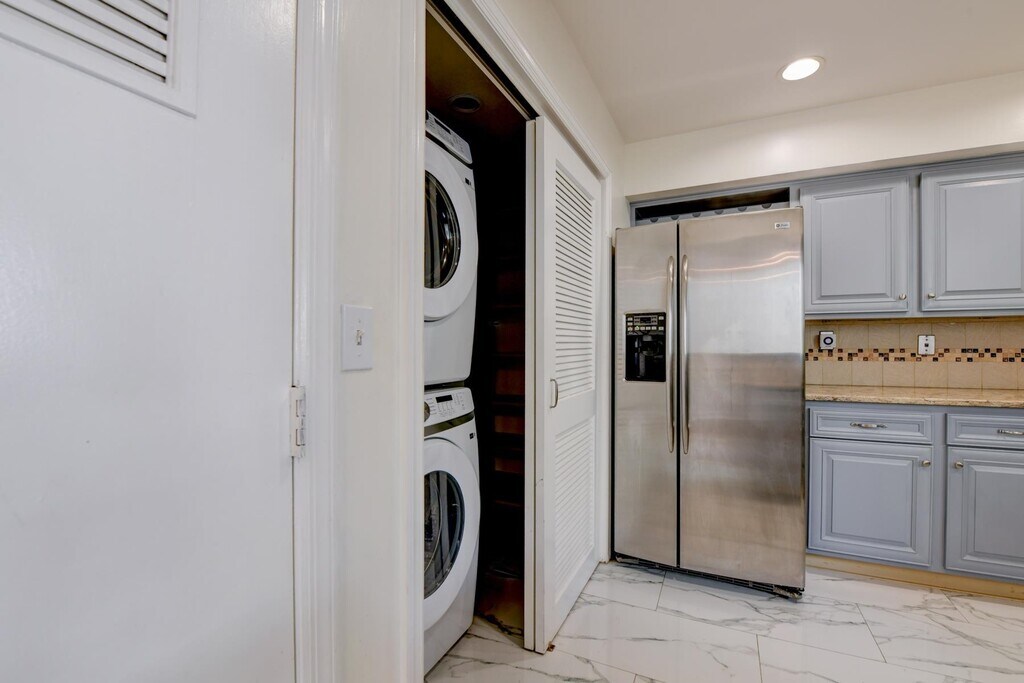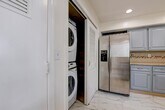 Step into this stunning and stylishly renovated 3-bedroom, 2.5-bath townhouse offering 1,704 sq ft of open living space. Enjoy magnificent pool and river views from your two private walk-out terraces, creating the perfect backdrop for relaxation and entertaining. The spacious living and dining room features a wood-burning fireplace, soaring lofted ceilings, and skylights that fill the space with natural light. The fully renovated gourmet kitchen is a chef's delight, with abundant cabinets, stainless-steel appliances, quartz countertops, and a breakfast bar. Designed for both comfort and convenience, the home offers hardwood floors and recessed lighting. The master suite includes a walk-in closet and a beautifully renovated master bath with a modern vanity. Two additional bedrooms share a full bath. Other features include a full-size washer and dryer, central heating and cooling, additional storage room at the carport, and assigned covered parking for two cars. For EV owners, the home comes with a dedicated Tesla charger for effortless at-home charging. Enjoy the resort-like amenities of Harmon Cove IV, including a gorgeous pool, 24-hour gated security, and walking/biking paths. Trash and common area landscaping/snow removal are all handled by the landlord/HOA. A commuter’s dream: NYC transportation is on-site, with the bus to Port Authority taking just 20 minutes, and only one train stop to Penn Station. Great location close to NJ Turnpike & Route 3, Newark Airport, MetLife Stadium, and American Dream Mall. Available ASAP. Credit/background check required.