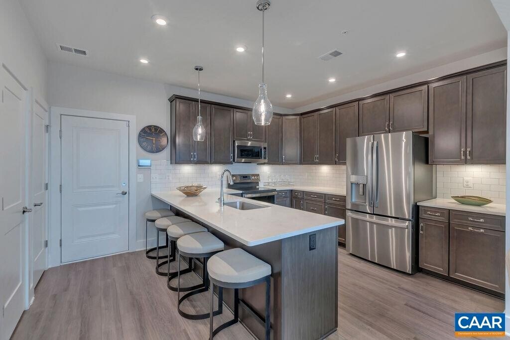 The Nicest location in Brookhill Commons Condominiums! Lower level end unit with loads of sunlight and privacy. 3 bedrooms,2.5 baths,9 ft ceilings,Quartz Counter tops,LVP flooring,gorgeous owner's suite,one car garage and much more. Just 3 years old and in great condition. All appliances and window treatments convey. Enjoy maintenance free living just 5 miles from The University of Virginia. MLS ID 674975