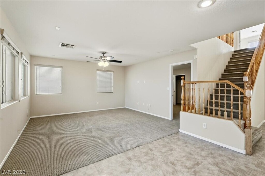 Check out this cute 4 bedroom home nestled in South Las Vegas, easy access off of Blue Diamond Road with shopping centers near by. Dual living rooms, desert landscaping, circular reading nook on second floor, this is a great home with plenty of living and bedroom space!