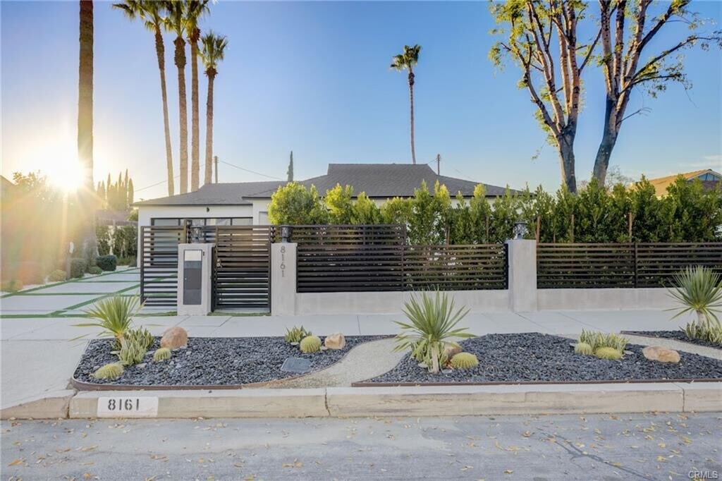 - Welcome to 8161 Encino Ave, a stunning contemporary haven in Northridge, California. This 4-bedroom, 3-bathroom masterpiece has undergone a complete remodel, embodying modern design and sustainable living. As you enter through the secure and gated entrance, you'll notice the low-maintenance ficus trees enveloping the property for ultimate privacy. The exterior showcases a Santa Barbara finish, complemented by larger windows that flood the interior with natural light. For the environmentally conscious, this home is equipped with solar panels and a Tesla charger. The landscaping has been thoughtfully designed with turf replacing traditional grass, minimizing maintenance. Exterior gate and lighting are seamlessly controlled via wifi, with lights automatically illuminating the surroundings at sunset and gracefully dimming at sunrise. Security and convenience take center stage with smart home features, including Ring security cameras, main door smart locks, and climate control accessible through a user-friendly phone application. The garage, complete with a new door, offers a work station, ample shelving, and storage. The entire home and garage have been insulated, ensuring comfort in all weather conditions. Step into the backyard oasis where a heated pool and jacuzzi await. The pool area, featuring a natural gas firepit, is controllable through the smart home application. An entertainer's dream, the backyard boasts an expansive deck with a retractable sunbrella, while one of the bathrooms provides direct access for guests or a quick post-pool dry off. Inside, the home exudes luxury with recessed lighting and art gallery-style lights. The kitchen has been tastefully remodeled, showcasing an island for dining and socializing. White oak accents seamlessly connect the spaces, while modern roller windows offer privacy and blackout options. Experience a touch of Colombian charm with imported rustic lamps that create a warm and inviting ambiance in the backyard. The sliding stacking doors leading to the outdoor space enhance the seamless indoor-outdoor living experience. Whether you seek a space for entertaining or unwinding, 8161 Encino Ave sets the stage for a lifestyle where luxury, technology, and comfort converge in perfect harmony. Welcome to your contemporary retreat in the heart of Northridge. Listing provided by: Martin Castro of MCRES Properties LA State License 1793207 Listing posted by Gary Cole [SYNDID 4144971 11262025]