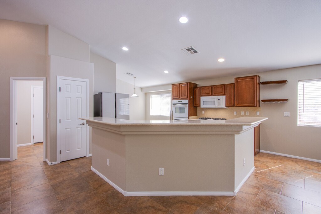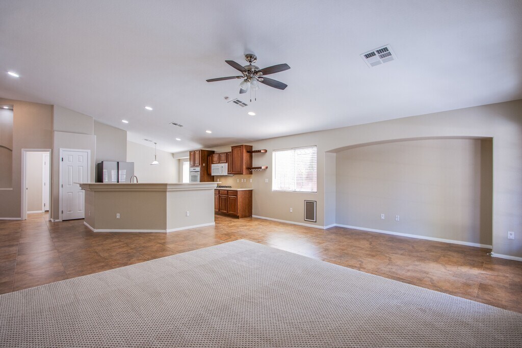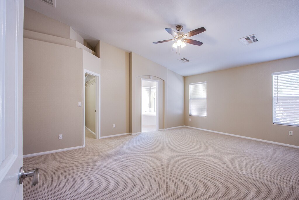 SINGLE-STORY home, located in a gated Centennial Hills community! FRESHLY painted inside with neutral tones & featuring BRAND-NEW carpet! Enjoy an open floor plan with 3 bedrooms & a 3-car garage! High ceilings, raised panel doors, tile, & lots of natural light throughout. The spacious living room includes a ceiling fan & patio doors that open to a private backyard retreat. The kitchen comes fully equipped with all appliances, including DOUBLE OVENS, recessed lighting, ample counter space, & a large breakfast bar. The oversized primary suite offers a walk-in closet, ceiling fan/light, spa-like bathroom with a separate shower & a relaxing garden tub. Outside, you'll love the mature landscaping, grape vines, fruit trees, and a COZY FIRE-PIT—perfect for entertaining! Professional landscape maintenance at $25/wk makes life just that much easier! Conveniently located near major freeways, Mt. Charleston, parks, & tons of shopping! Sorry, no pets. Don't wait—schedule your tour today!