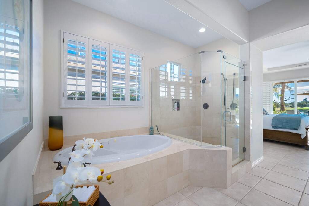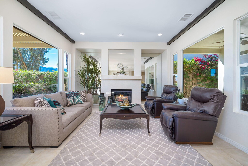 Currently rented from NOV. 1,2025 Thru APRIL-15-2026. Available in other months. November through April: $13,000.00 per month. May through October: $8,000.00 per month. This beautifully upgraded Juniper model sits above a double fairway,overlooking a lake with panoramic golf course and mountain views. The east-facing rear yard features a saltwater Pebble Tec pool & spa,BBQ,and electric shades. There are 5 TVs with DVR boxes,plus a 65-inch TV for watching outdoors by the pool. The living room features a dramatic view overlooking the pool,lake,and golf coursepower sun shades on the view windows and shutters on the others. The living features a fireplace. The kitchen features a Sub-Zero refrigerator & freezer,a wine fridge,a double oven,a microwave,and granite counters. The master suite features a large walk-in shower,a spacious walk-in closet,a spa tub,and amazing views of the golf course and the surrounding mountains. suites with w/walk-in closets. Set up for entertaining or just relaxing by the poolside. Wi-fi,cable TV included. Trilogy La Quinta is a gated 55+ community featuring golf courses,tennis,pickleball,bocce ball,aqua aerobics,billiards,a full-service Coral Spa,a cafe,and numerous other activities. Book this vacation retreat now!