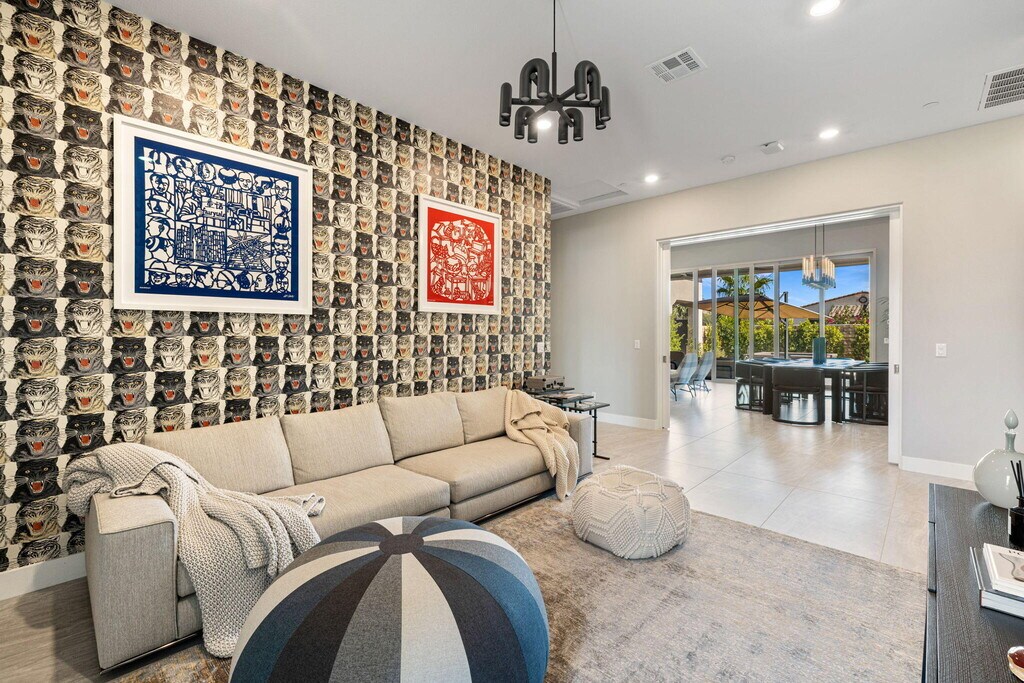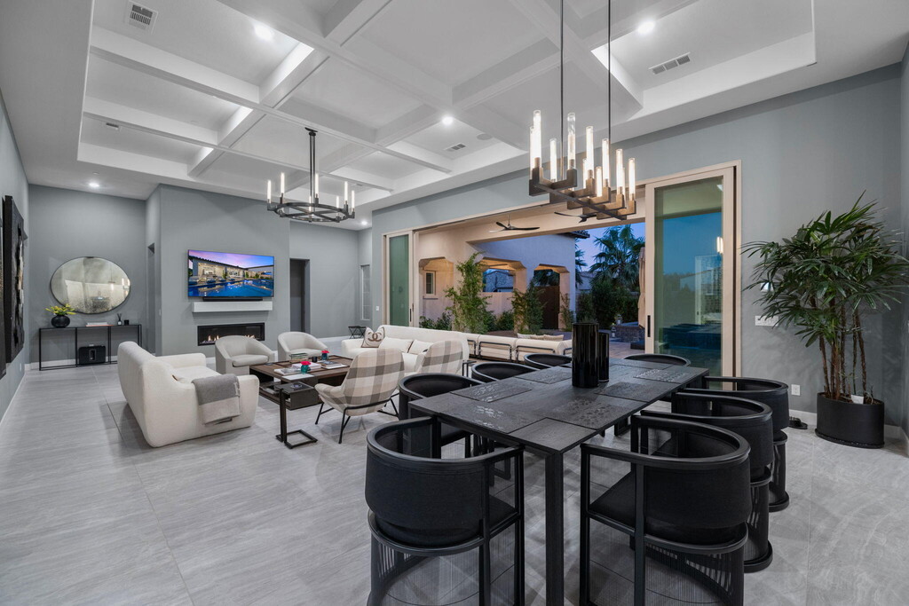 One of the most high-end homes in the prestigious community of Griffin Ranch in South La Quinta. This exquisite 4 bedroom,4.5 bathroom property offers the perfect balance of elegance,comfort,and that indoor/outdoor desert lifestyle - the ideal escape for your next vacation. Surrounded by majestic views of the Santa Rosa Mountains,this custom home features thoughtful designer finishes and is highly upgraded and well-appointed. The massive sliding glass door opens up to the backyard creating the perfect indoor-outdoor experience overlooking the custom pool & spa. This home has all the amenities for your next family getaway! Spread out in style in this sprawling designer estate at Griffin Ranch. Custom Pool & Spa with BBQ and Firepit. 4 bedrooms with all en-suite bathrooms. The highly upgraded Chef's kitchen is stocked with everything you need. Perfect luxurious vacation home for the entire family! You will have access to the fabulous community amenities,which include: 8 pickleball courts,2 tennis courts,pool/spa,9 hole putting & chipping green,a world-class fitness center,and Events at the 10,000 sq. ft clubhouse,often including a band,dancing,and catering. Perfect location surrounded by prestigious communities PGA West,Hideaway,and Madison Club. Close to dining,golf courses,hiking,shopping,and entertainment.