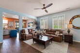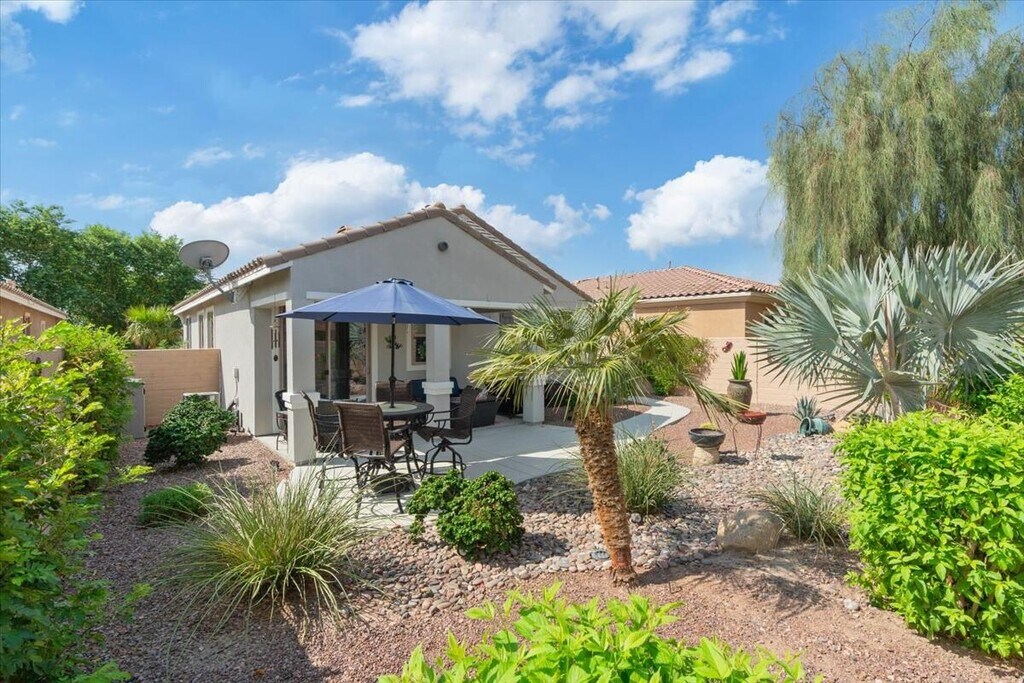 Welcome to this immaculate and charming turn-key furnished Granada Plan,offering 1,099 sq ft of thoughtfully designed and decorated living space. Every detail reflects quality and care,from the freshly painted exterior and interior,custom window coverings and tasteful furnishings and artwork. This home creates a welcoming atmosphere that you'll love coming home to. The harmonious blend of style and comfort makes it an retreat for relaxation and entertaining alike. Experience the perfect balance of elegance and functionality in every corner with a seamless flow between the open living space and the kitchen and dining area. The primary suite provides comfort with dual vanities and a spacious walk-in closet. The additional bed room and guest bath will have your guests feeling welcome and relaxed. The private backyard oasis invites you amidst lush landscaping complete with gas grill,dining and sitting areas and a fire table for the cool winter evenings. The home is adequately stocked with all the kitchen tools and utensils a home cook may need. Available seasonally OR long-term. $4000/month Oct-April; $3750 May-Sept; or Long-Term (one-year or longer) $2800/month.