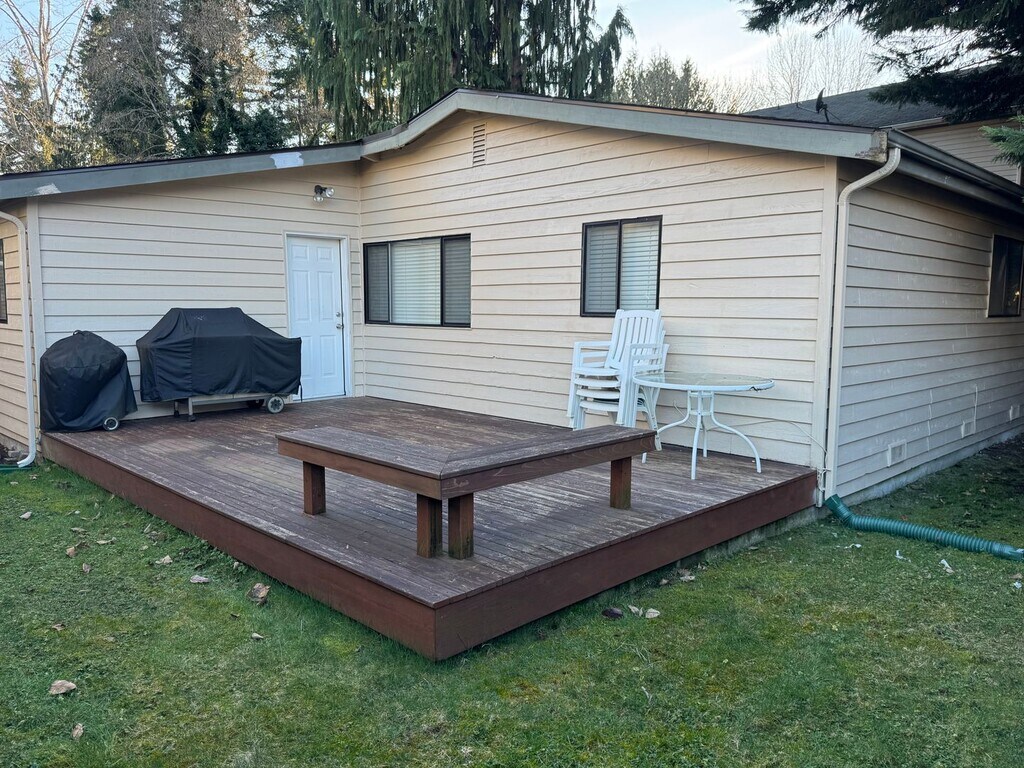 This charming home has been recently refreshed and is move-in ready. Enjoy fresh interior paint, updated flooring, and tasteful improvements throughout that give the space a clean, modern feel while maintaining warmth and character. The kitchen features well-maintained cabinetry with updated finishes and includes a refrigerator. The layout flows comfortably into the main living areas, creating an inviting space for everyday living. Step outside to a spacious deck — ideal for relaxing or entertaining. A large laundry room provides added convenience and storage. Stay cool all summer long with central AC. Located in a small, private 10-home community with easy access to 228th St and Bothell-Everett Hwy, this home offers both comfort and convenience. A great opportunity to enjoy an updated home in a peaceful setting. Pet Policy: Pets allowed on case by case basis, $500 Refundable Deposit per pet. Rental Requirements: Minimum Credit Score 625 Minimum Income 3x's Rent Non-refundable admin fee $100 Property Manager: #5181